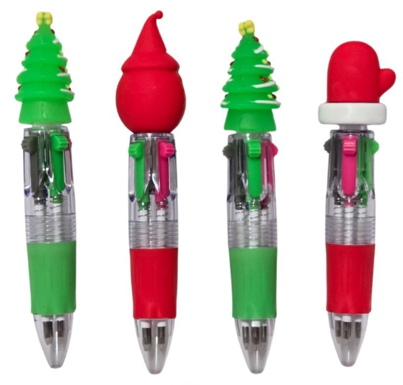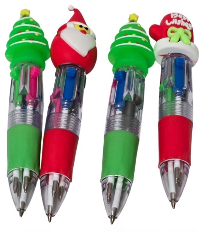 4Pc Mini 4-Color Click Switchable Christmas Ballpoint Pens(Red/Green/Blue/Pink)