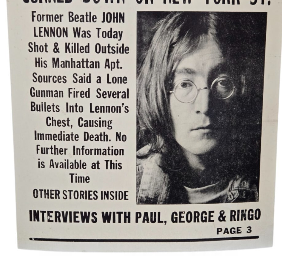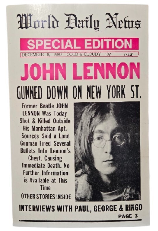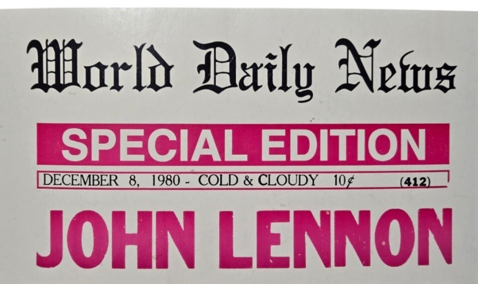 John Lennon 1980 Death Newspaper Poster 22x14 Cardstock Beatles Memorabilia Art