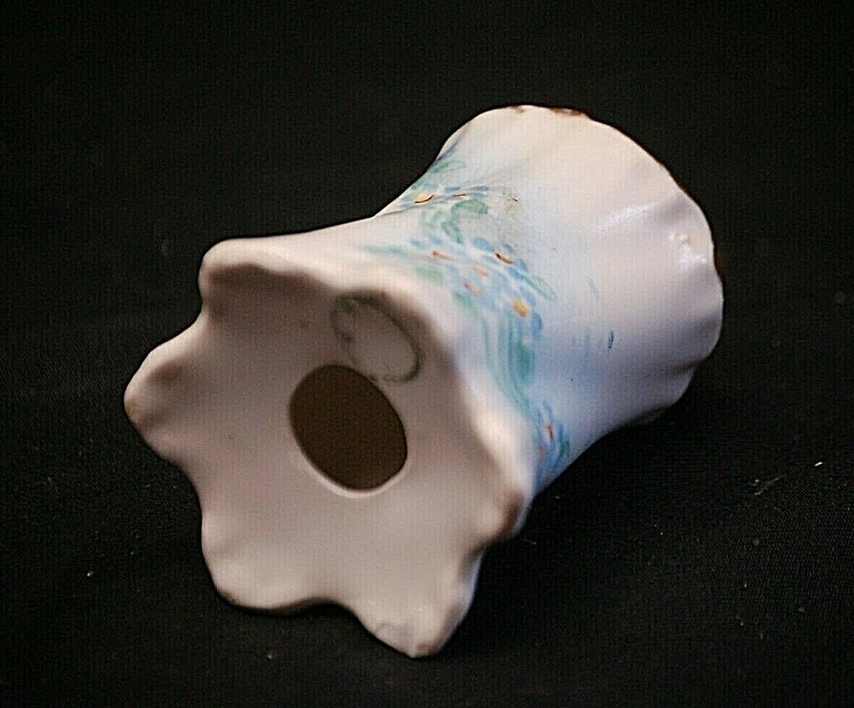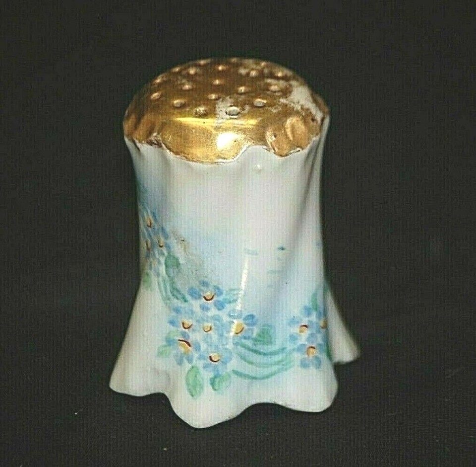 White Porcelain Single Salt or Pepper Shaker Blue Floral Gold Trim