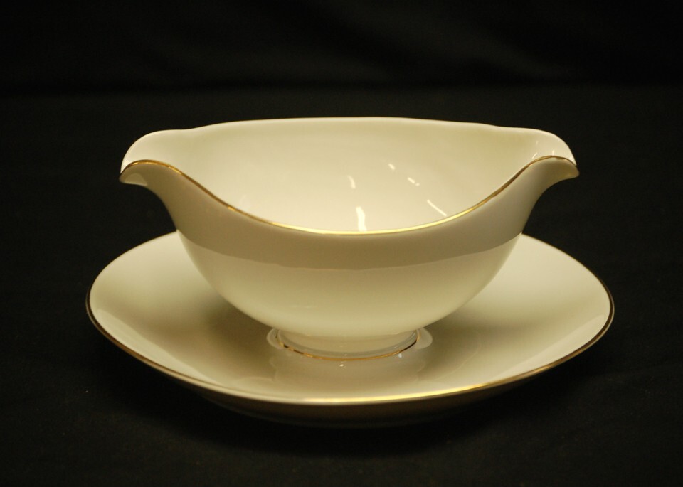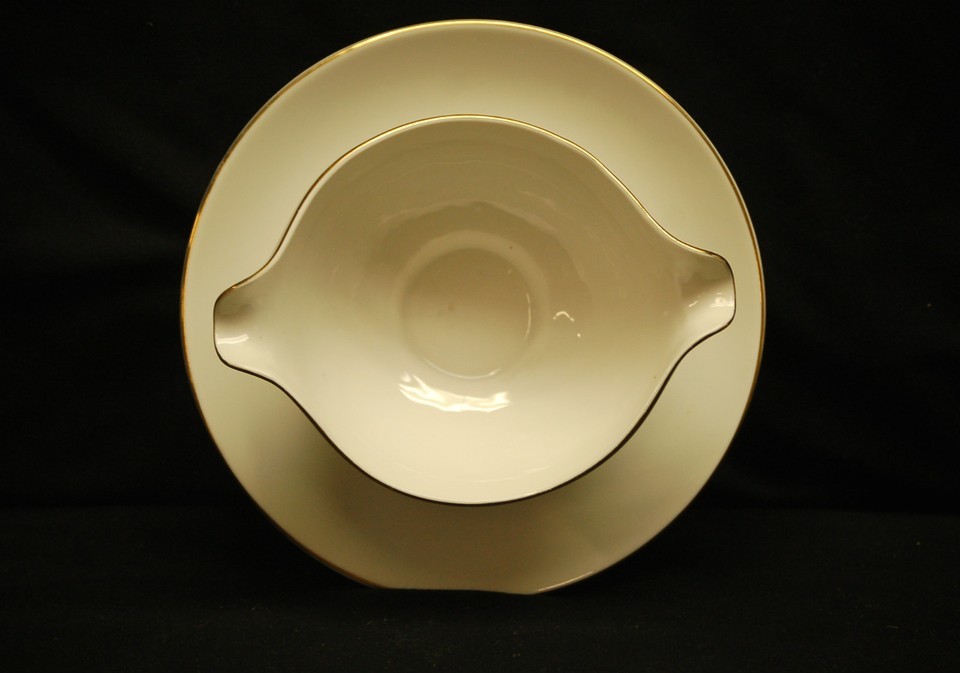 Bohemia China Gravy Boat w Attached Underplate Czechoslovakia White w Gold Rim