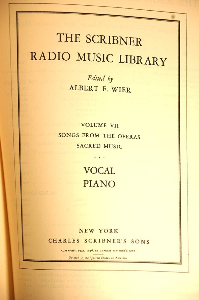Scribner Radio Music Library Vol 7 Piano Opera Songs Sacred Music 1946 Hardcover