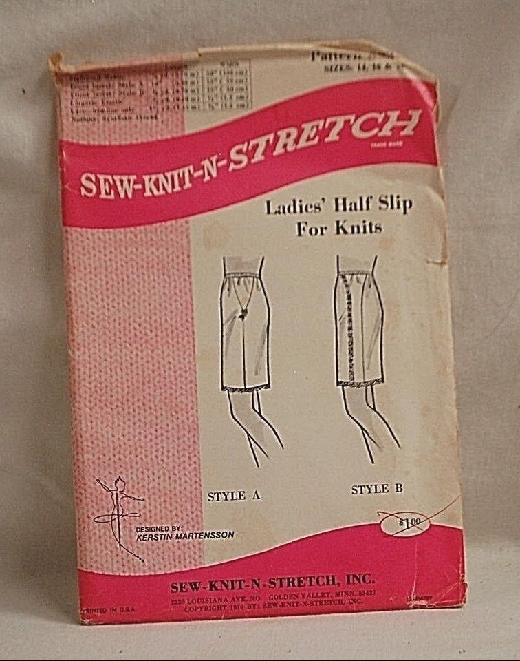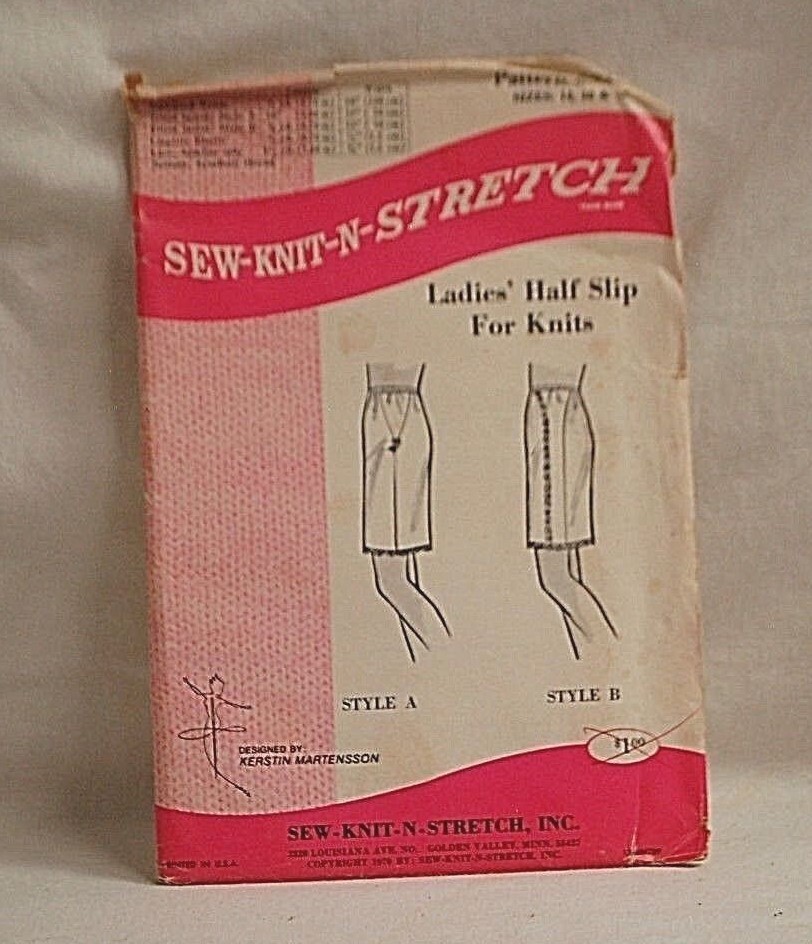 Sew Knit N Stretch 235 Sewing Pattern Ladies Half Slip Knit Vintage 1970's NOS