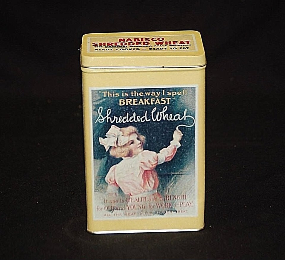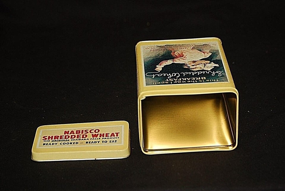Vintage '92 Advertising Ad Shredded Wheat Nabisco Biscuit Co Litho Metal Tin Can