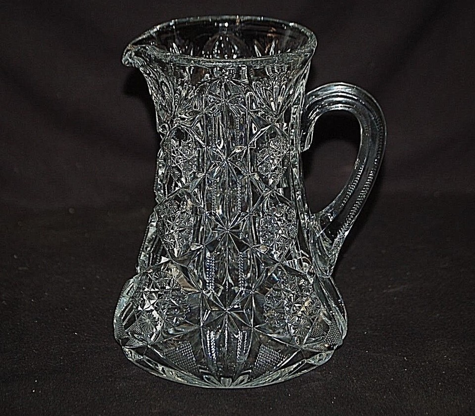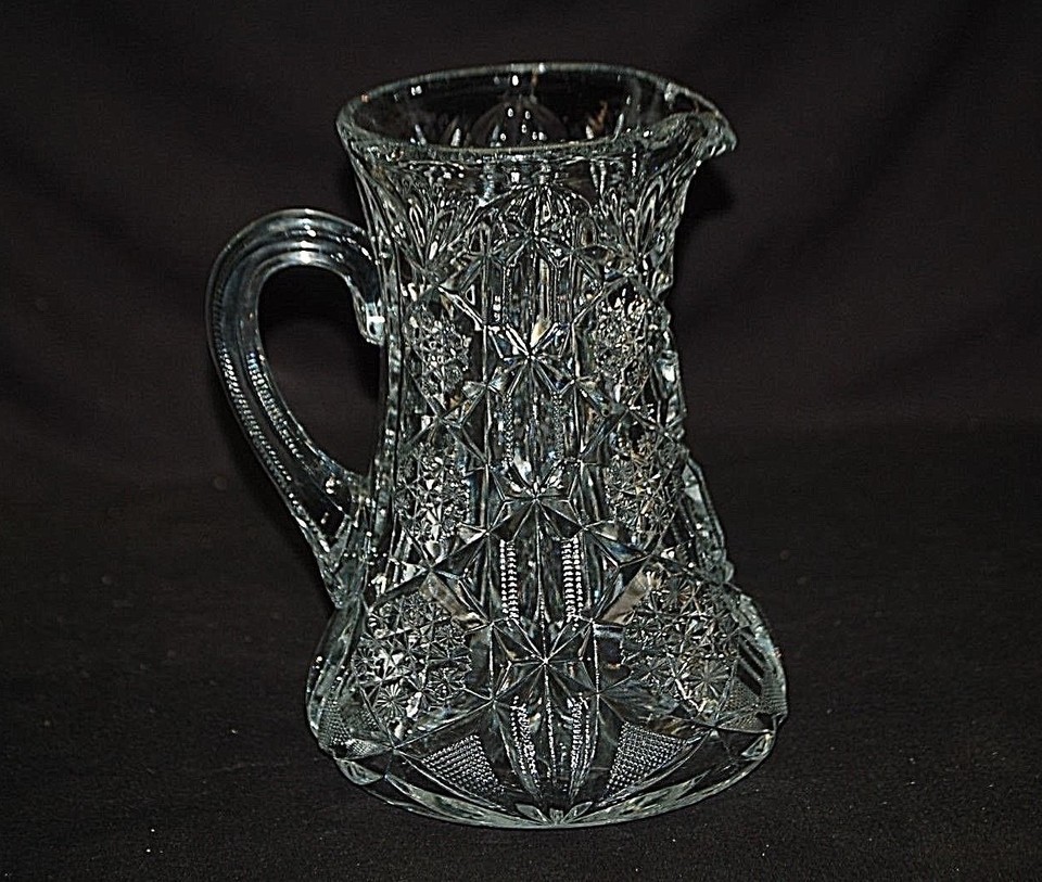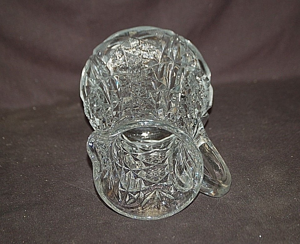 Toltec McKee Press Cut Glass Lemonade Pitcher Tec Pattern Vintage