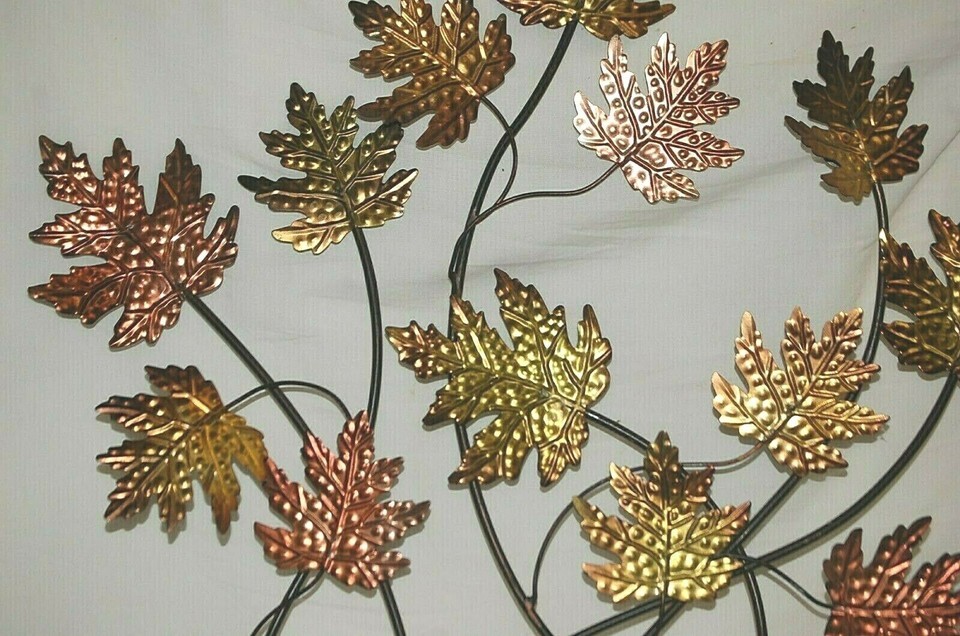 Metal Art Wall Hanging Fall Autumn Leaves Copper & Brass Color Leaf Sculpture