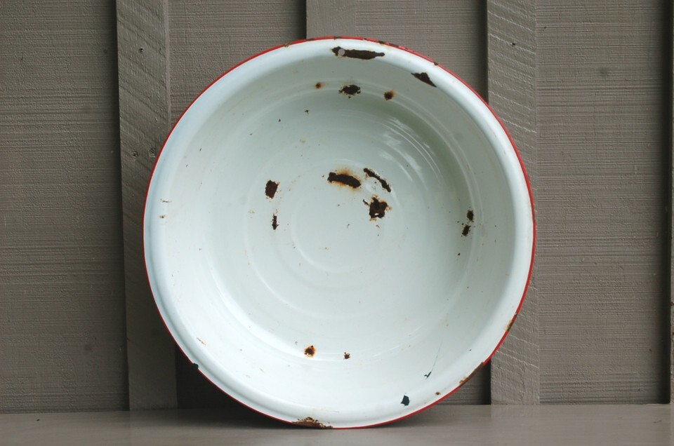 Old Vintage Antique Primitive Graniteware Enamelware Wash Basin Kitchen Tool A
