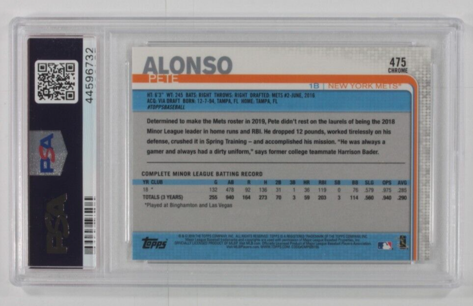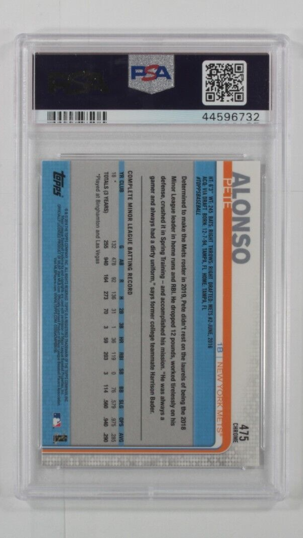 2019 Topps CM Kofferraum Set Chrom Pete Alonso PSA 10 Edelstein Ungebraucht #475
