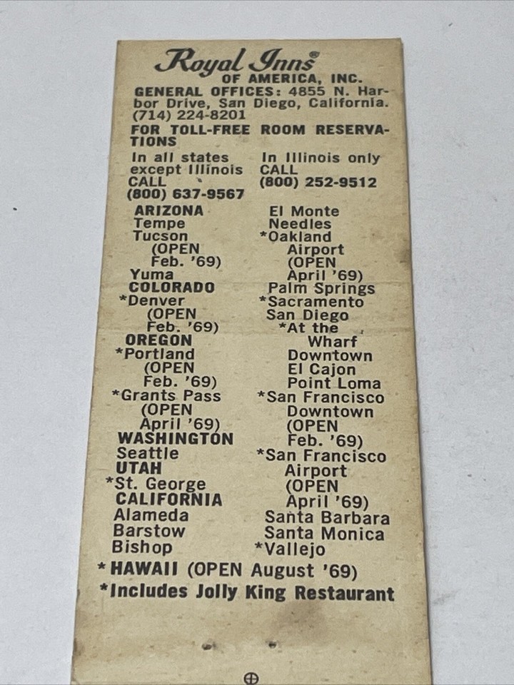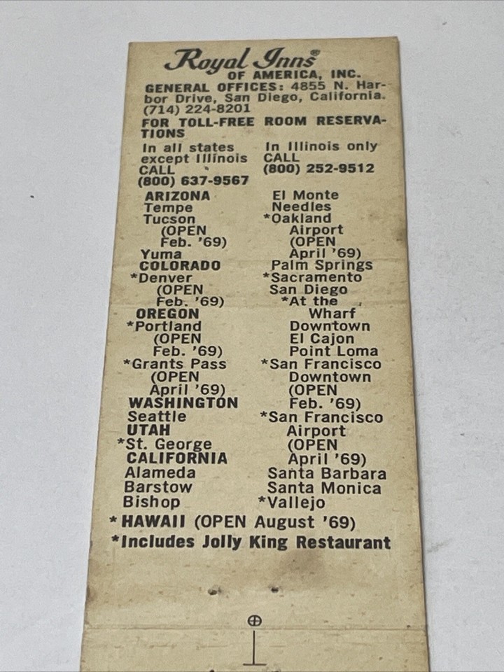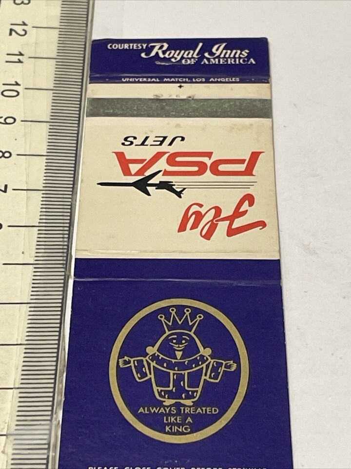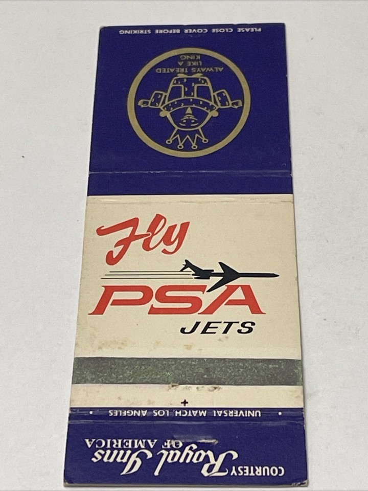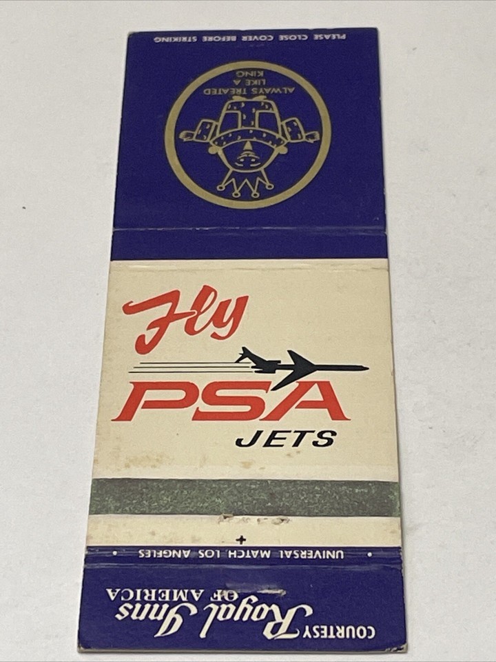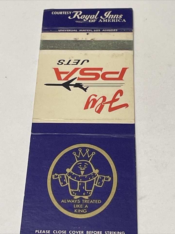 Matchbook Covers Fly PSA Jets Always Treated Like A King Royal Inns gmg