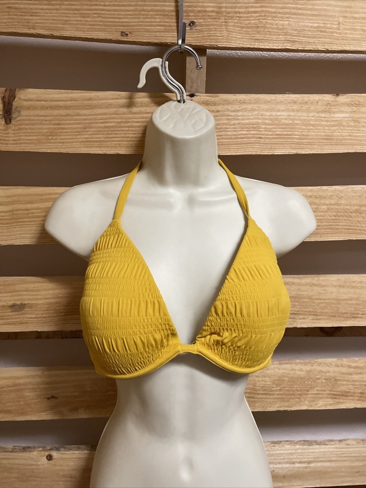 Shade Shore Mustard Yellow Bikini Halter Top Woman's Size 36D