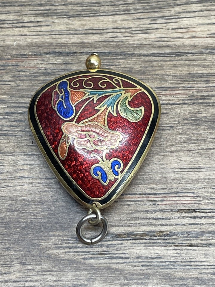 Vintage Cloisonne Enamel Maroon Floral Double Sided Pendant Charm Estate Find KG
