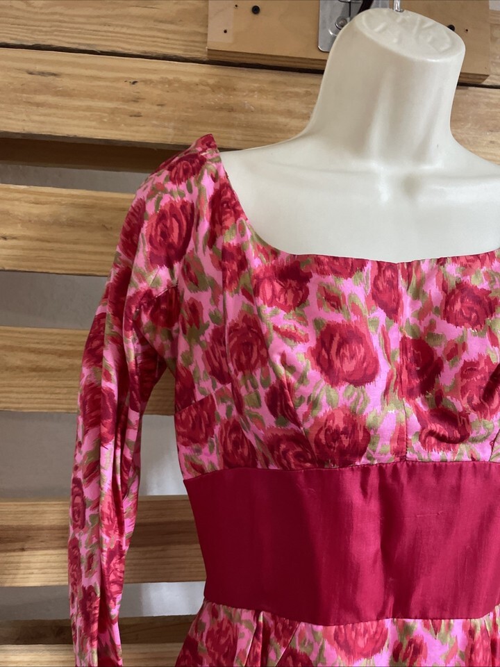 Vintage Mam'selle by Betty Carol Red Floral Wiggle Dress Junior's Size 11 KG JD