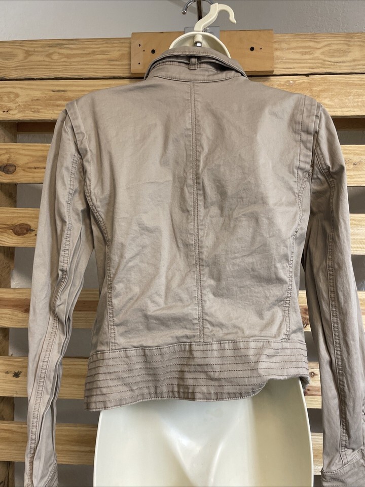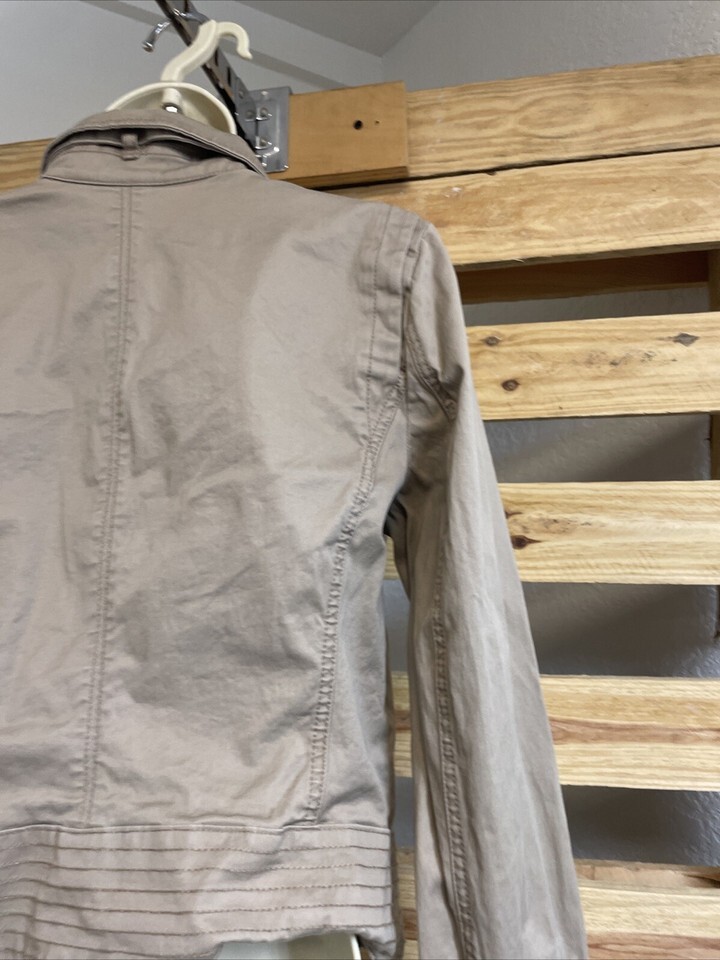 White House Black Market Tan Bomber Zip Up Jacket Woman's Size 12 KG