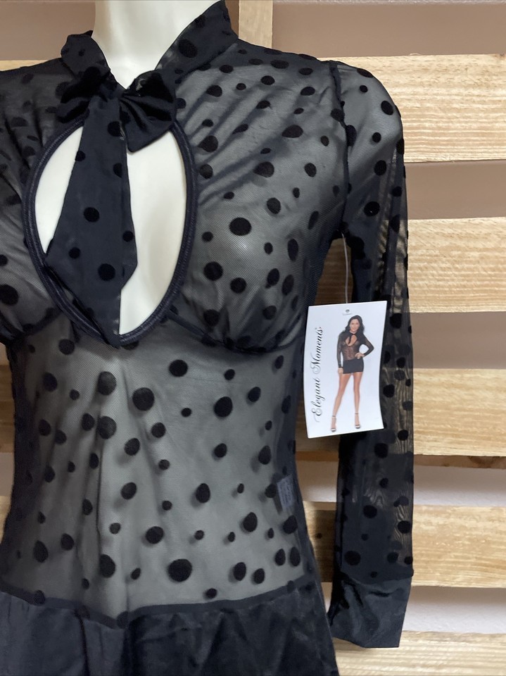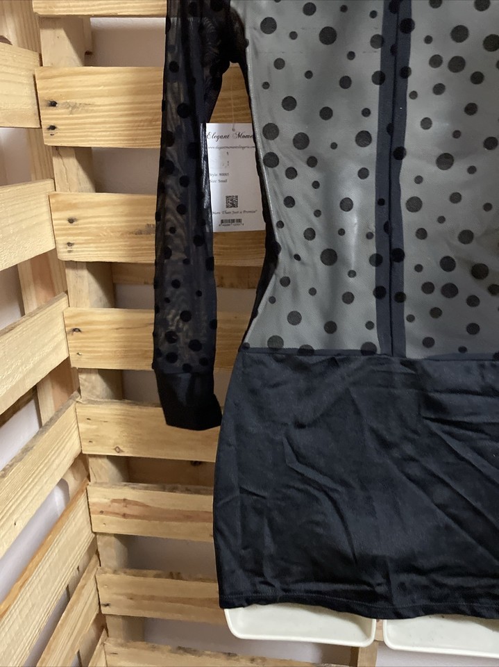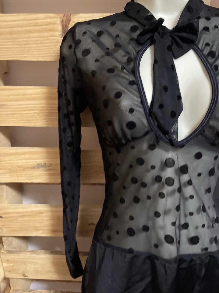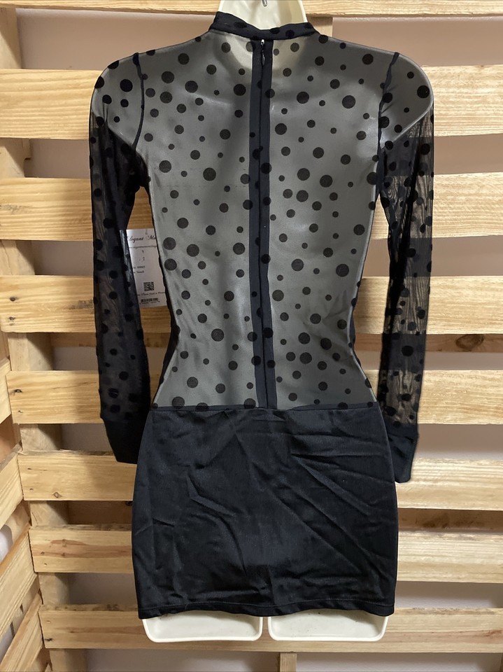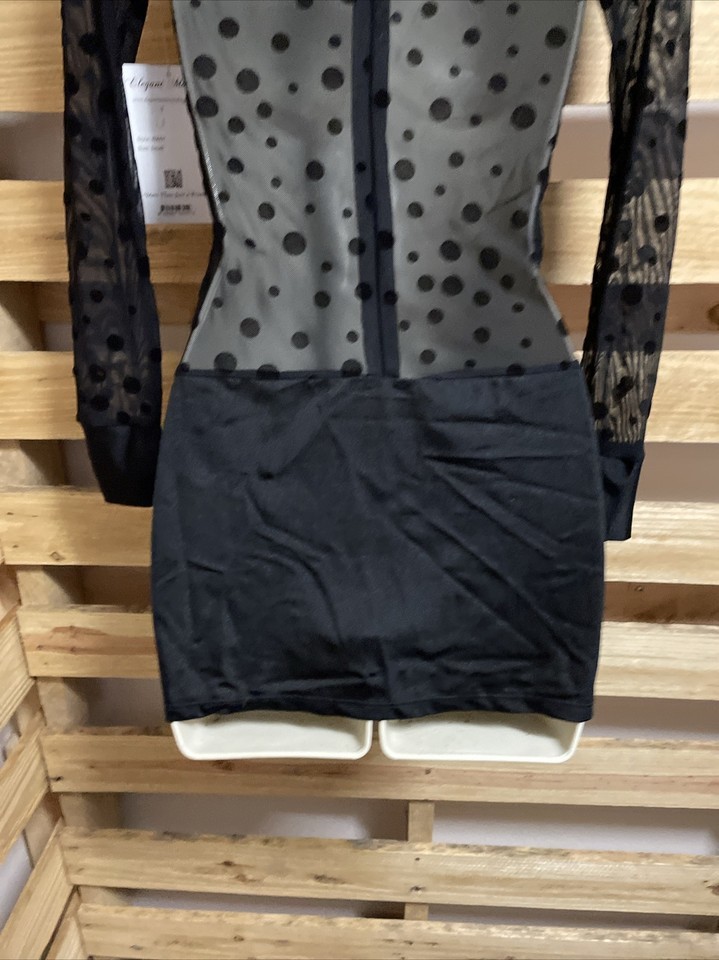 NEW Dreamgirls Black Sheer Polka Dot Dress Woman's Size Small Clubwear KG JD