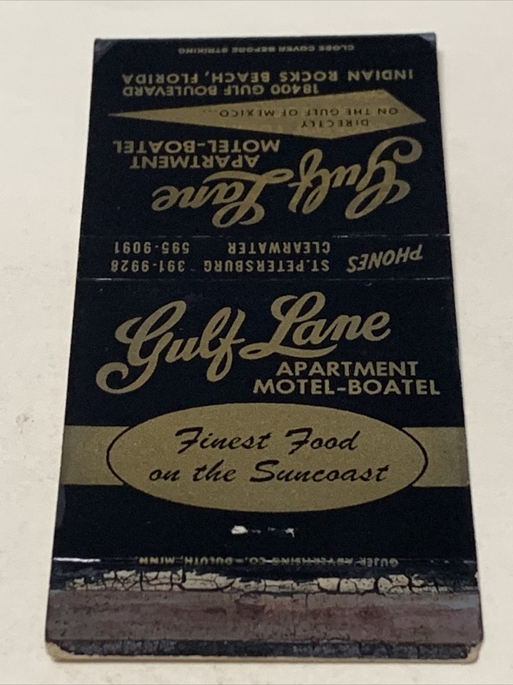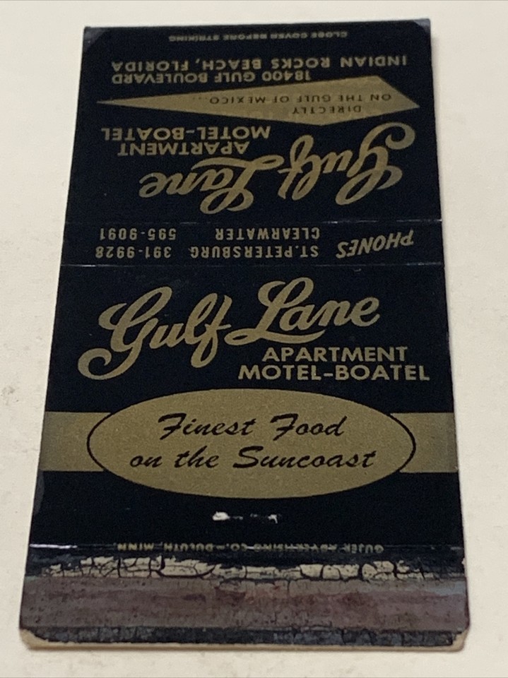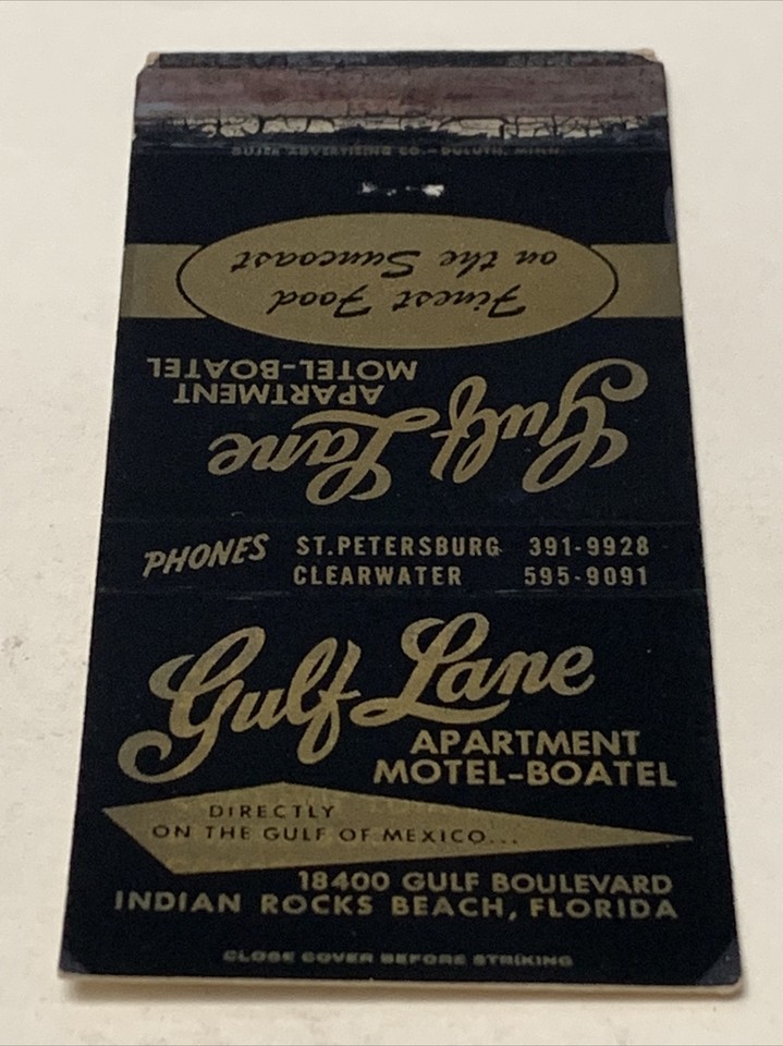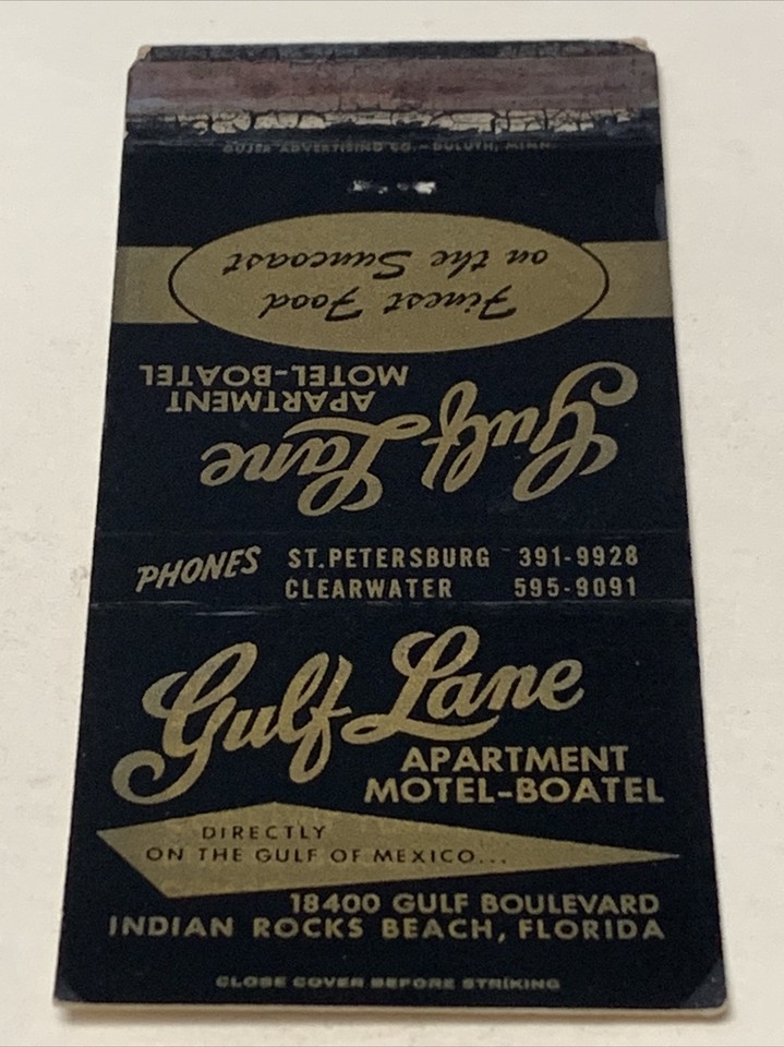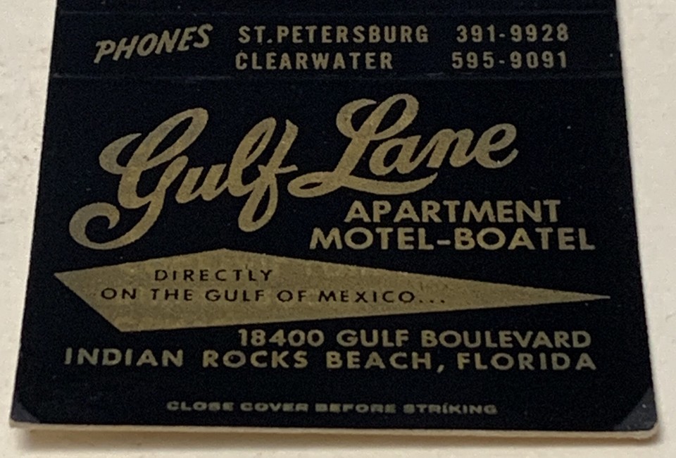 Matchbook Cover Gulf Lane Apartment Motel - Boatel Indian Rocks Beach,FLa gmg