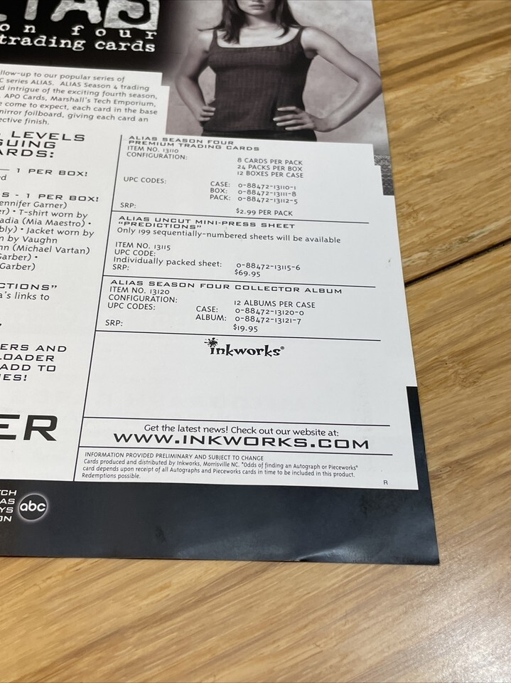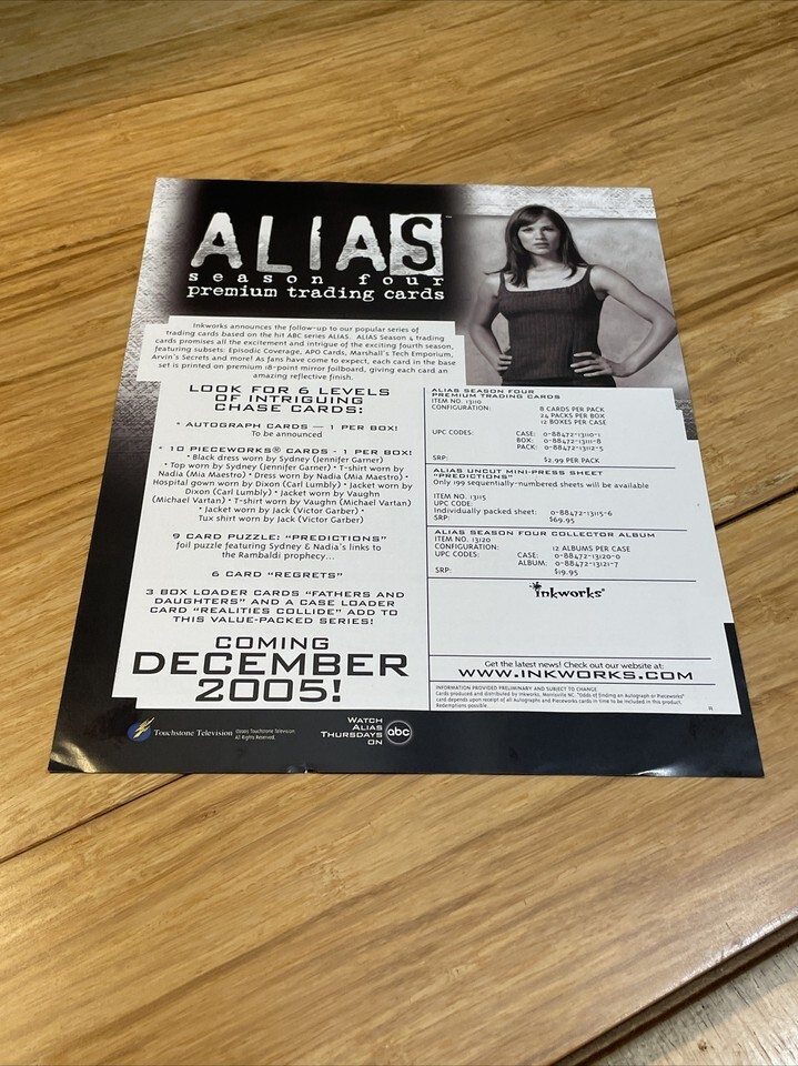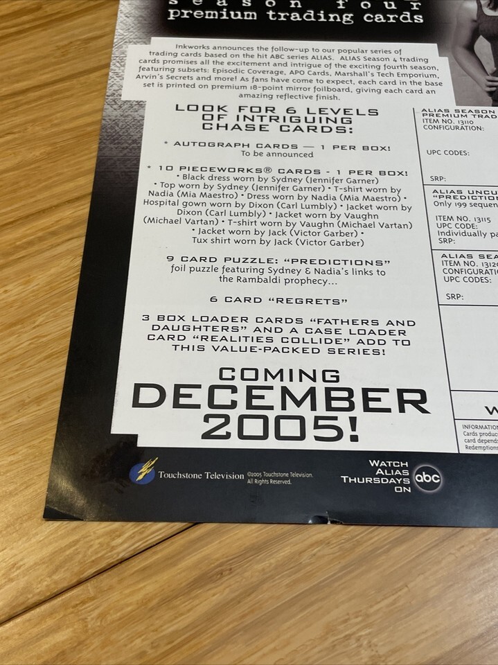 Inkworks 2005 Alias Season Four Trading Card Promotional Poster KG JD