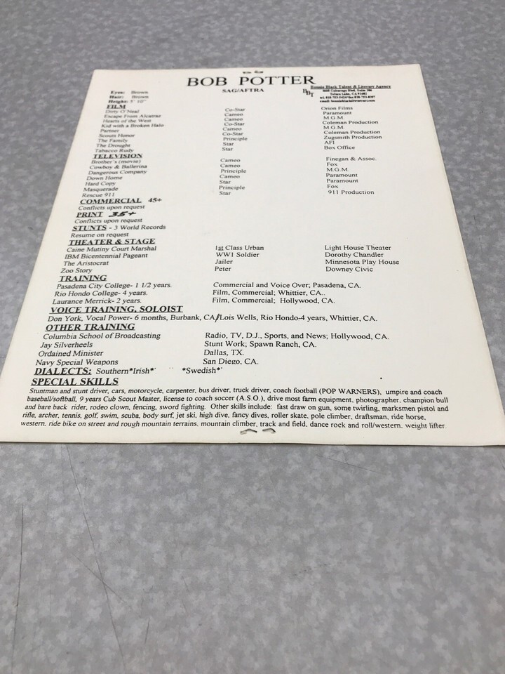 Bob Potter 8x10 Autograph Photo With Resume and 15 similar items