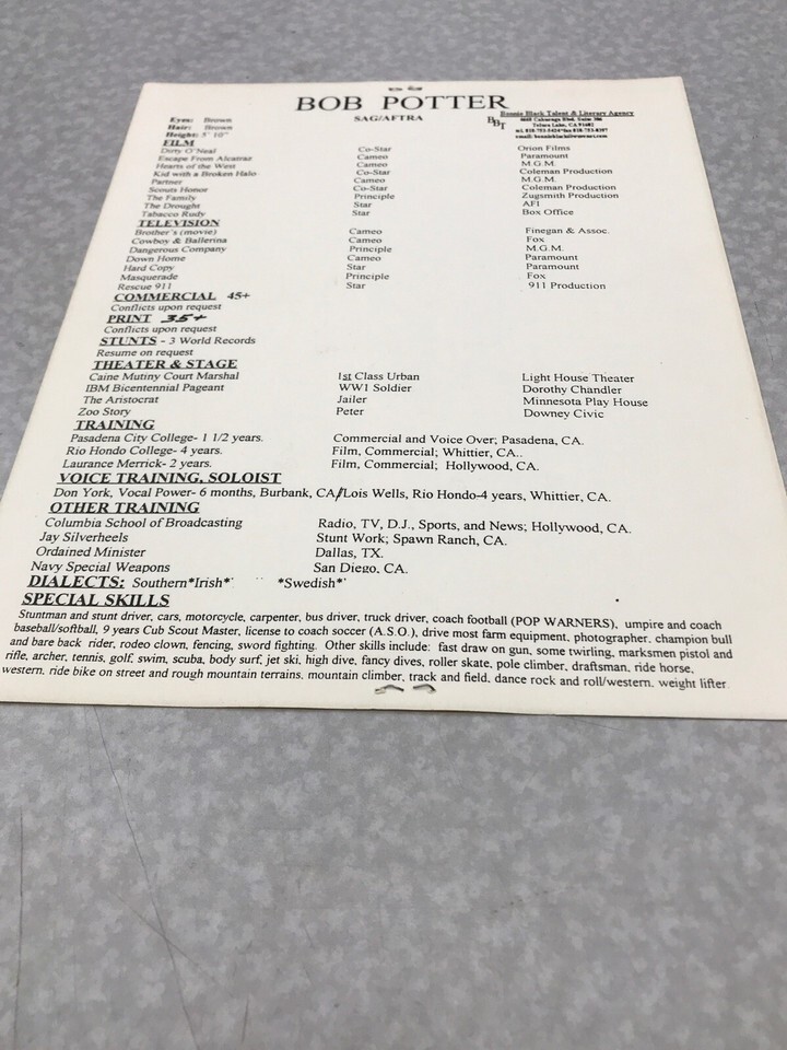 Bob Potter 8x10 Autograph Photo With Resume Sheet KG Z2 Rescue 911 Dirty OโNeal