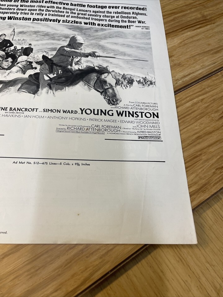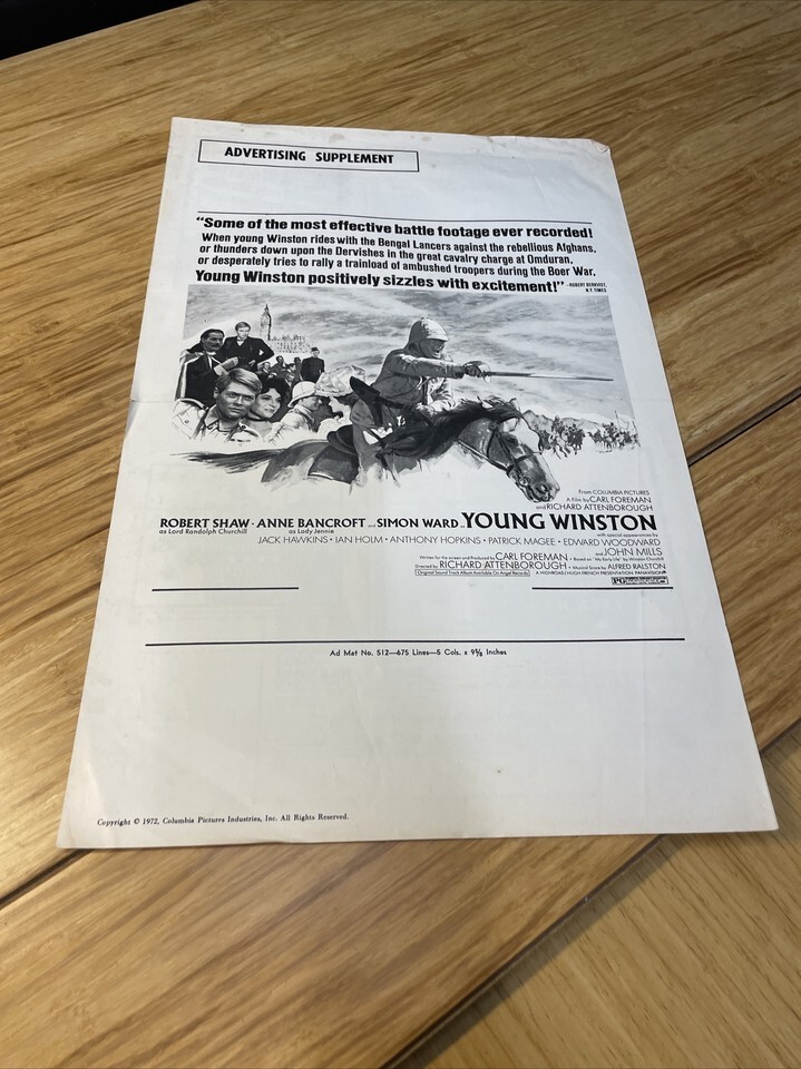 Vintage 1972 Young Winston Movie Film Cinema and similar items