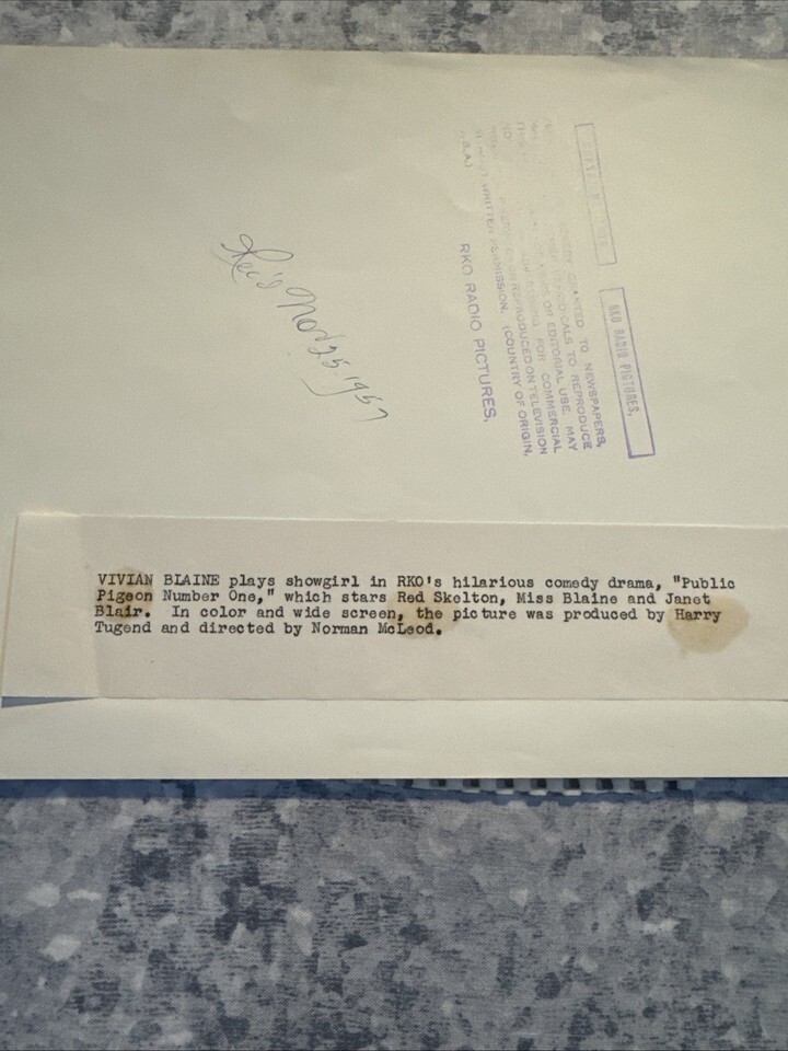 8 X 10 Photo Vivian Blaine Autograph Guys And Dolls Public Pigeon Actress