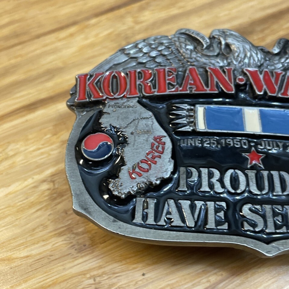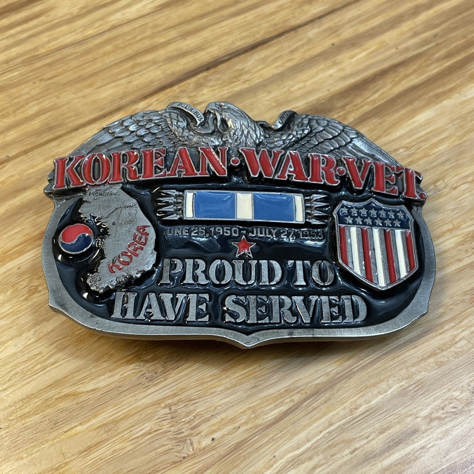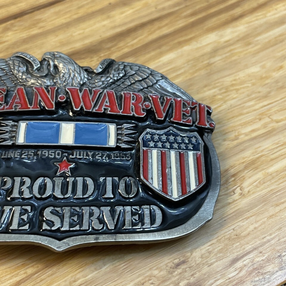Vintage 1988 Korean War Vet Proud To Have Served Belt Buckle Veterans KG JD