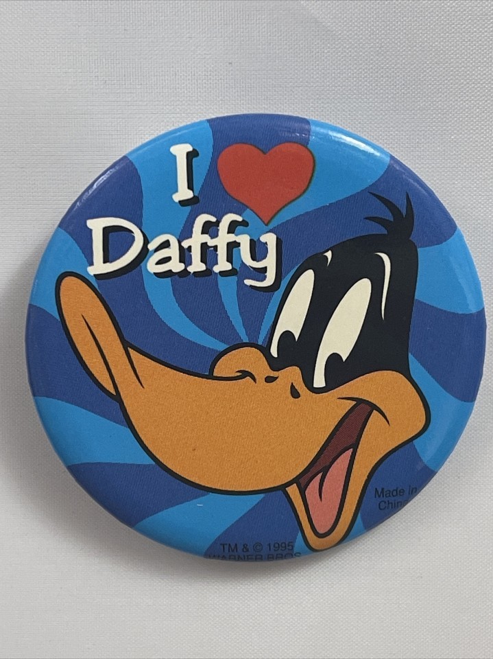 I ❤️ Daffy Duck Vintage 1990’s KIDS! Looney Tunes Safety Pin Back Button WB