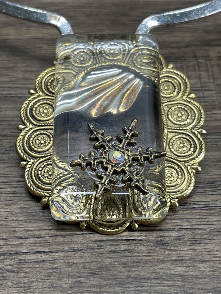 Vintage Gold Tone Choker Necklace Handmade Snowflake Winter Christmas KG JD