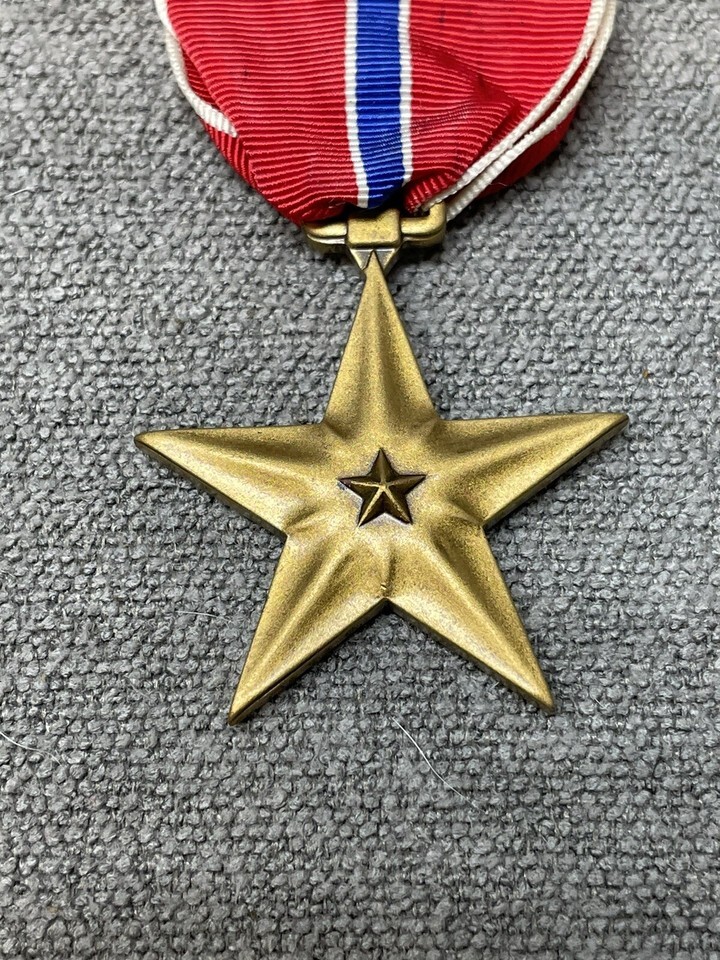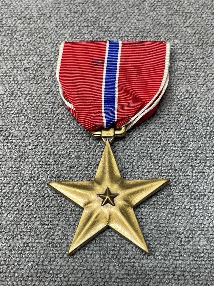 Vintage WWII Bronze Star Medal with Ribbon Military Militaria KG JD