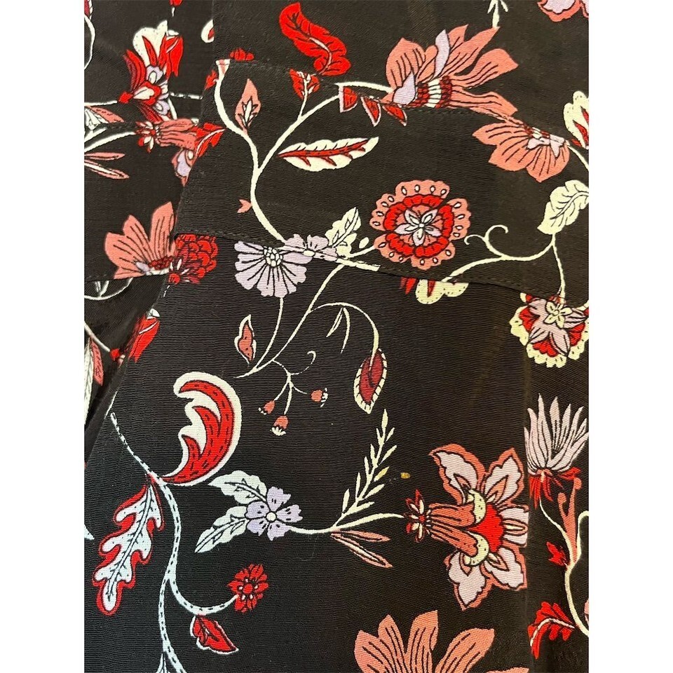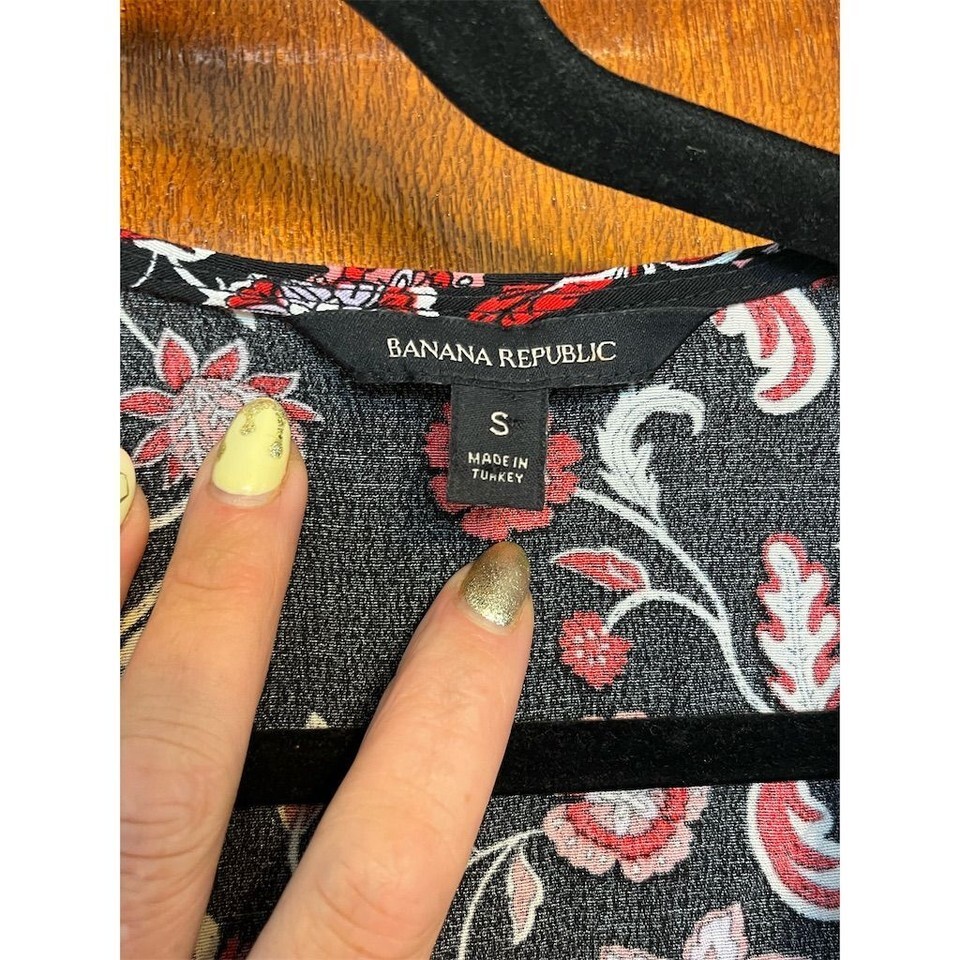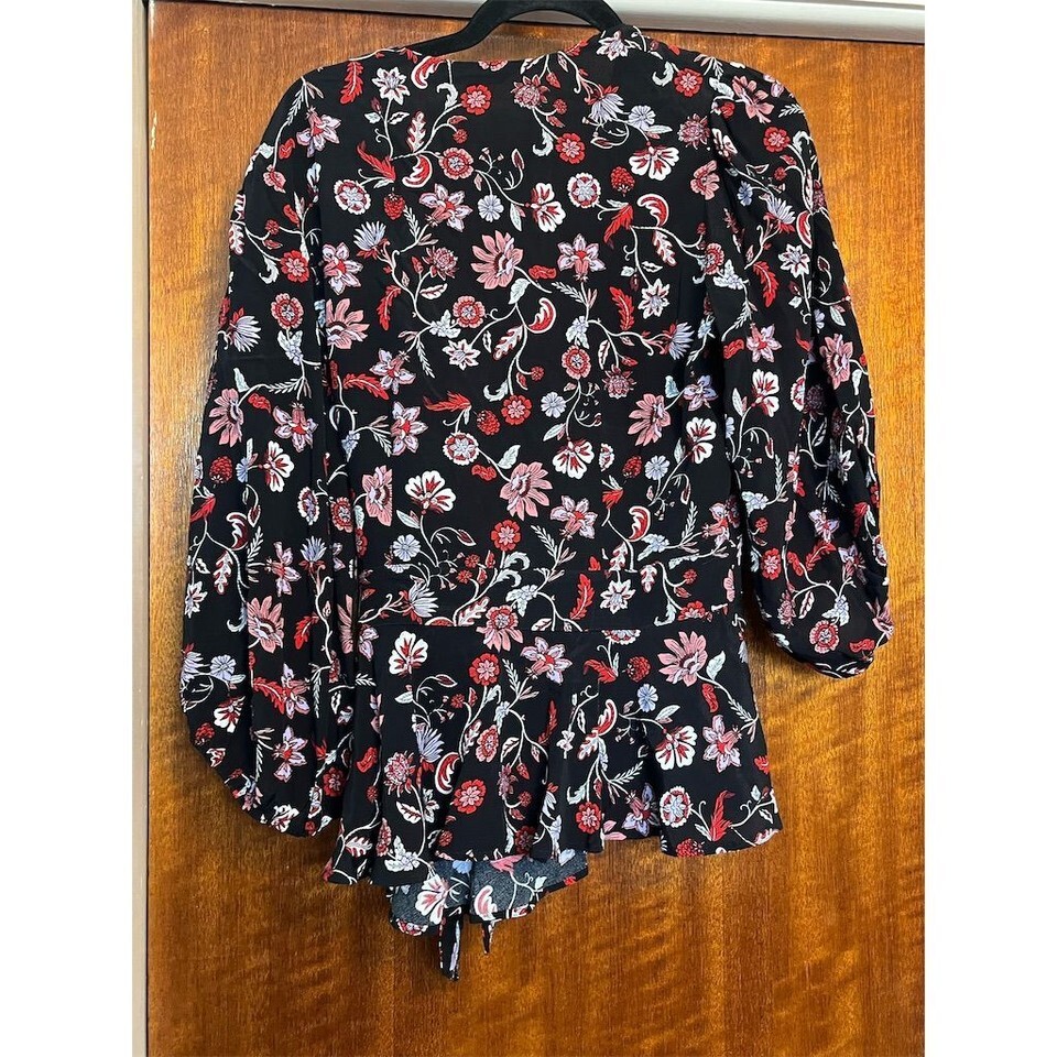 Banana Republic Black Floral Wrap V Neck Tie Waist Ruffle Hem Top Size S