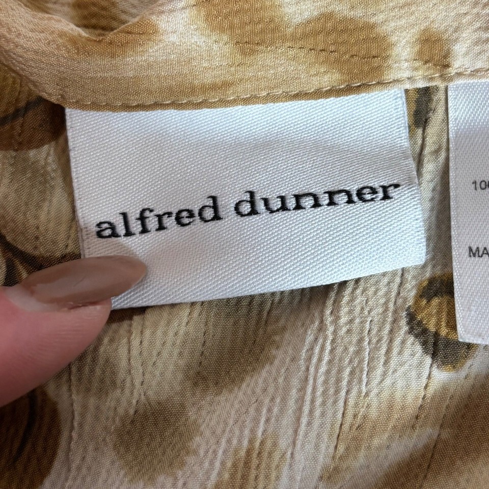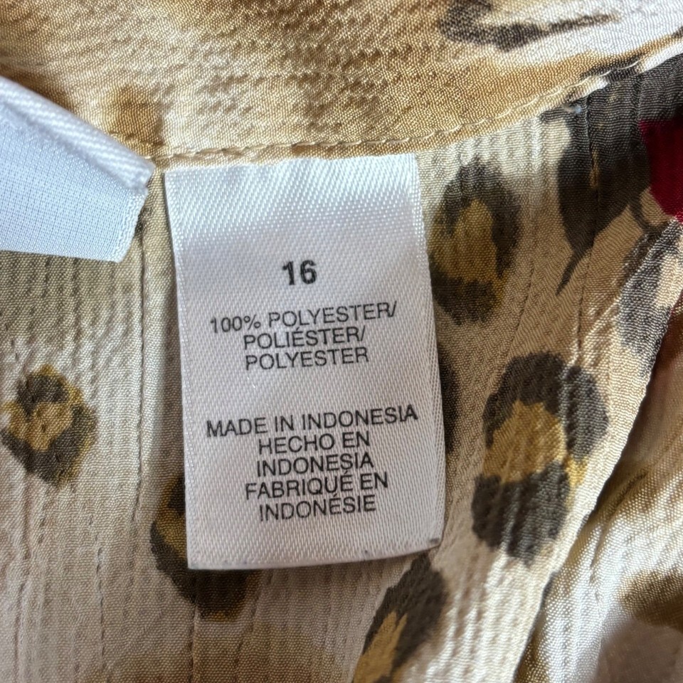 Alfred Dunner Women Size 16 Animal Floral Print Button Up Shirt Beige Red Brown