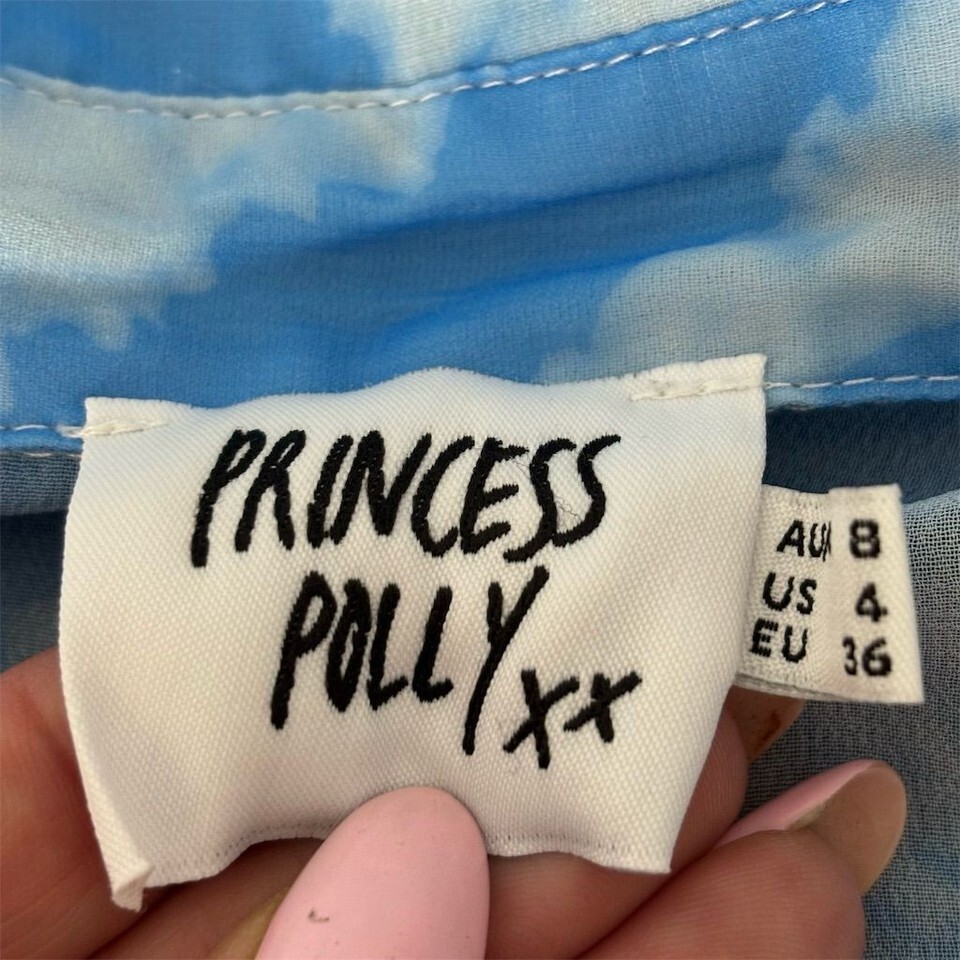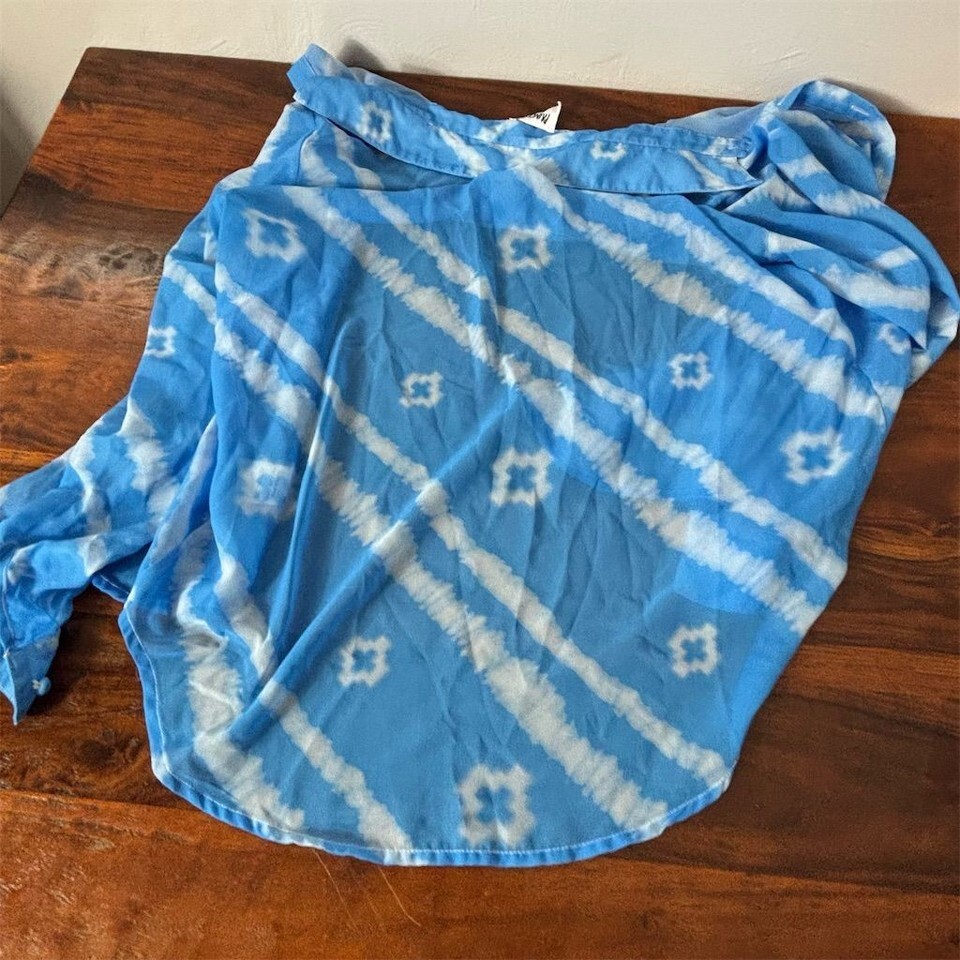 Princess Polly Women's Blue Tie-Dye Button-Up Shirt Size 4 Casual