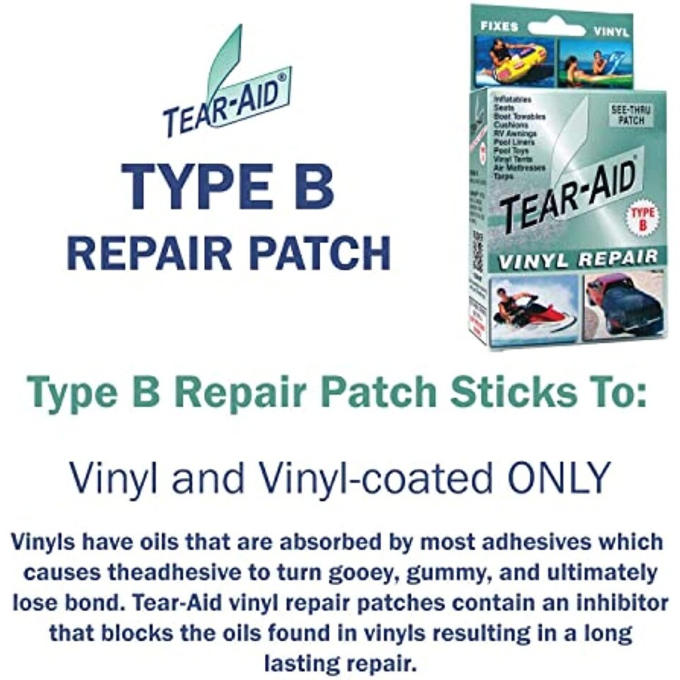 TEAR-AID Vinyl Repair Kit, Type B Clear Patch for Vinyl and Vinyl-Coated