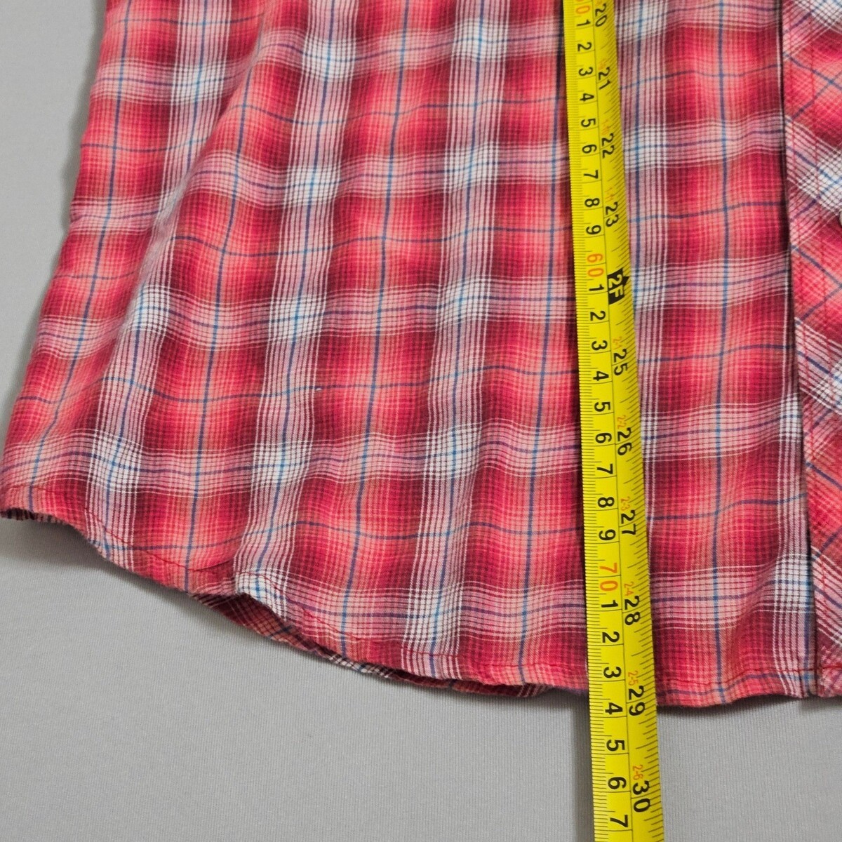 Wrangler Y2K Red Plaid Western Pearl Snap Shirt Cowboy Rodeo Core Short Sleeve M