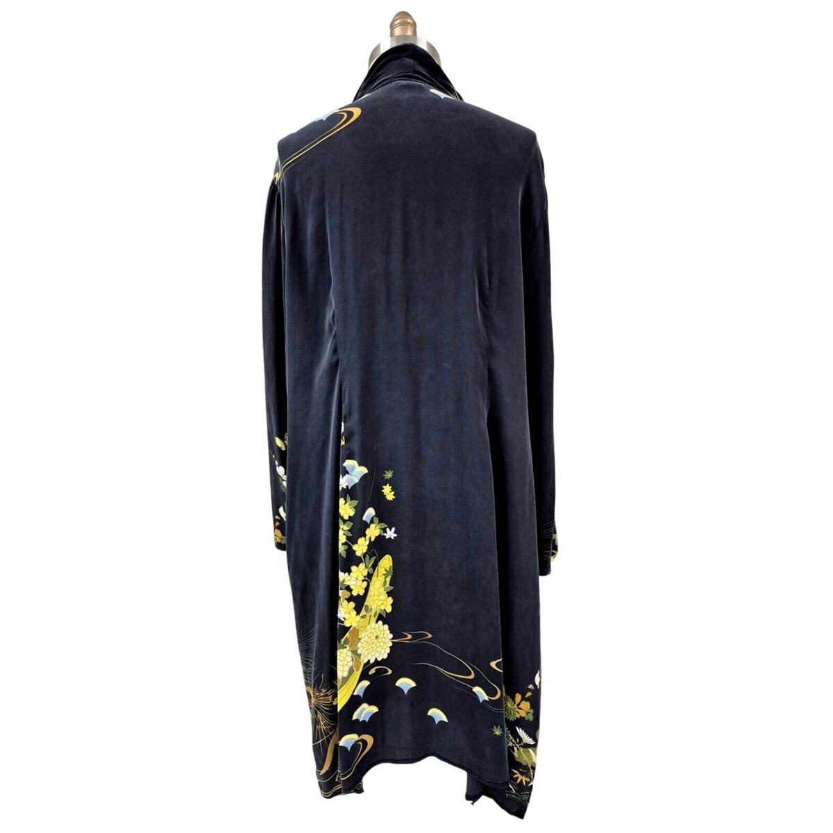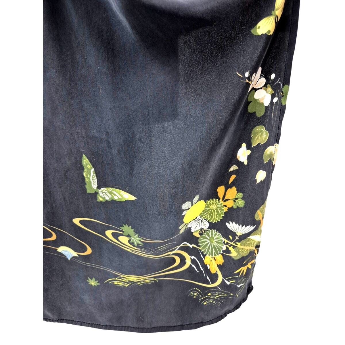Citron Santa Monica 100% Silk Kimono Brushed Black yellow floral Border Print OS
