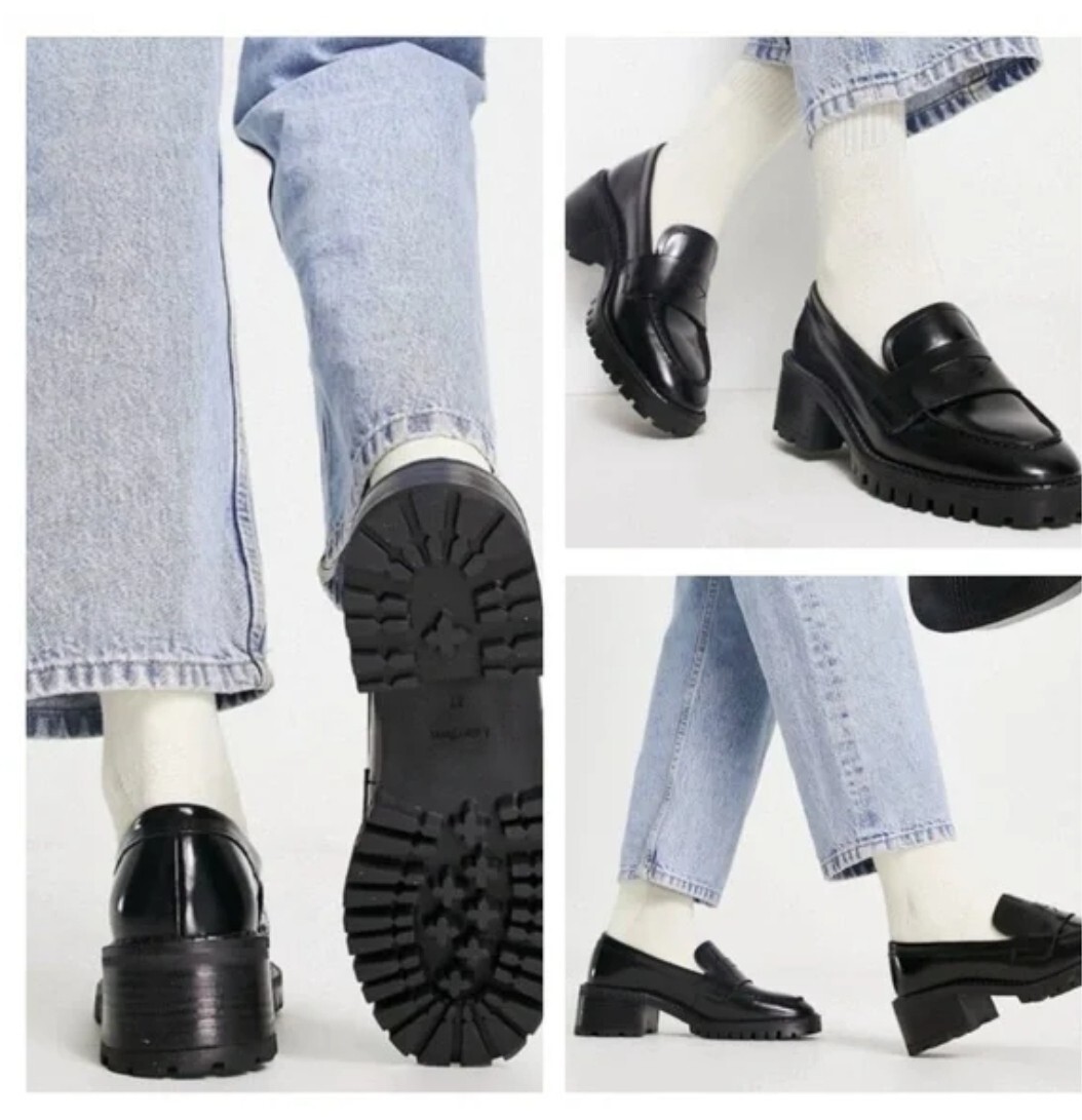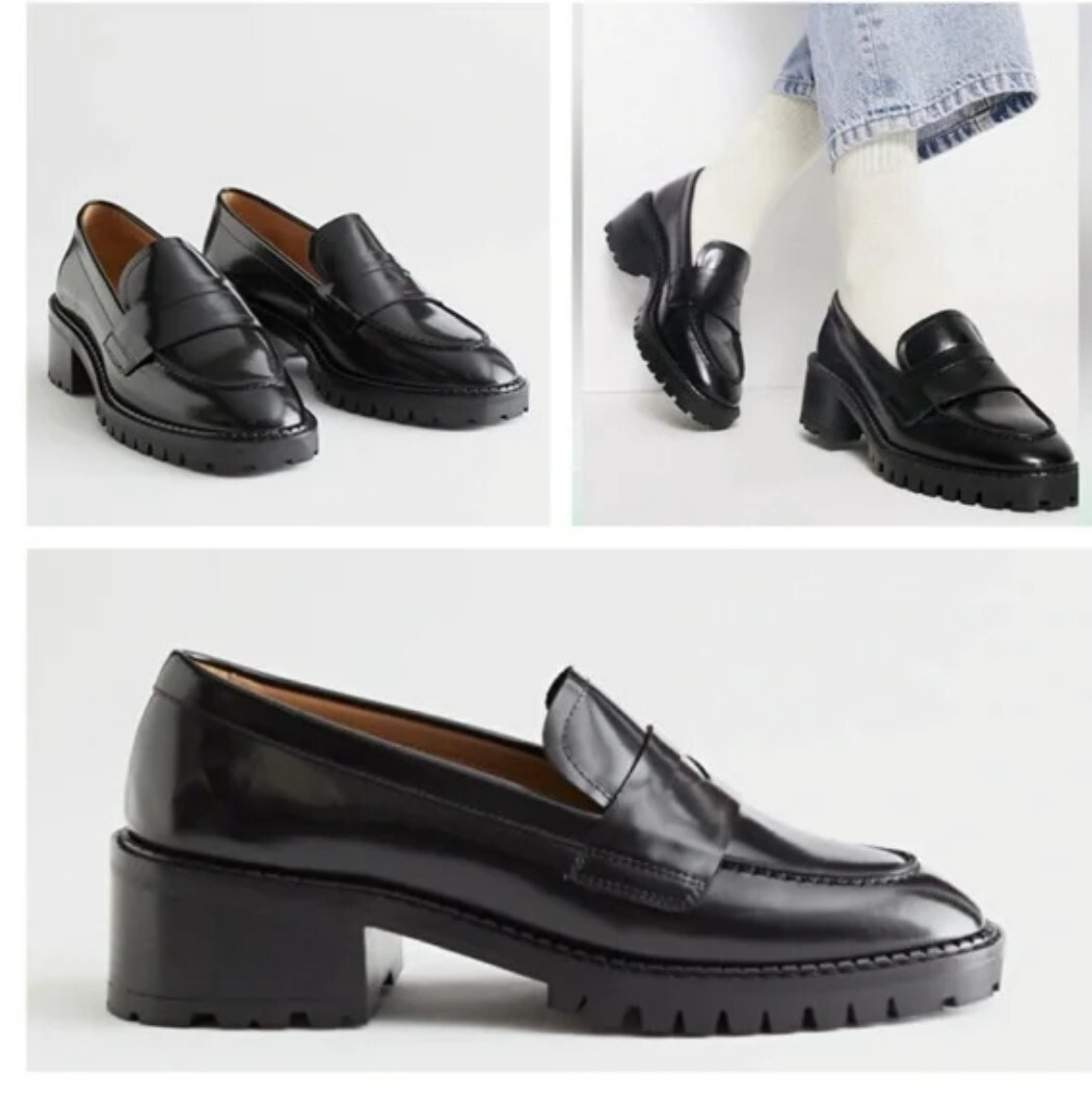 Other Stories Heeled Leather Penny Loafers Black Leather Chunky Sole US size 8