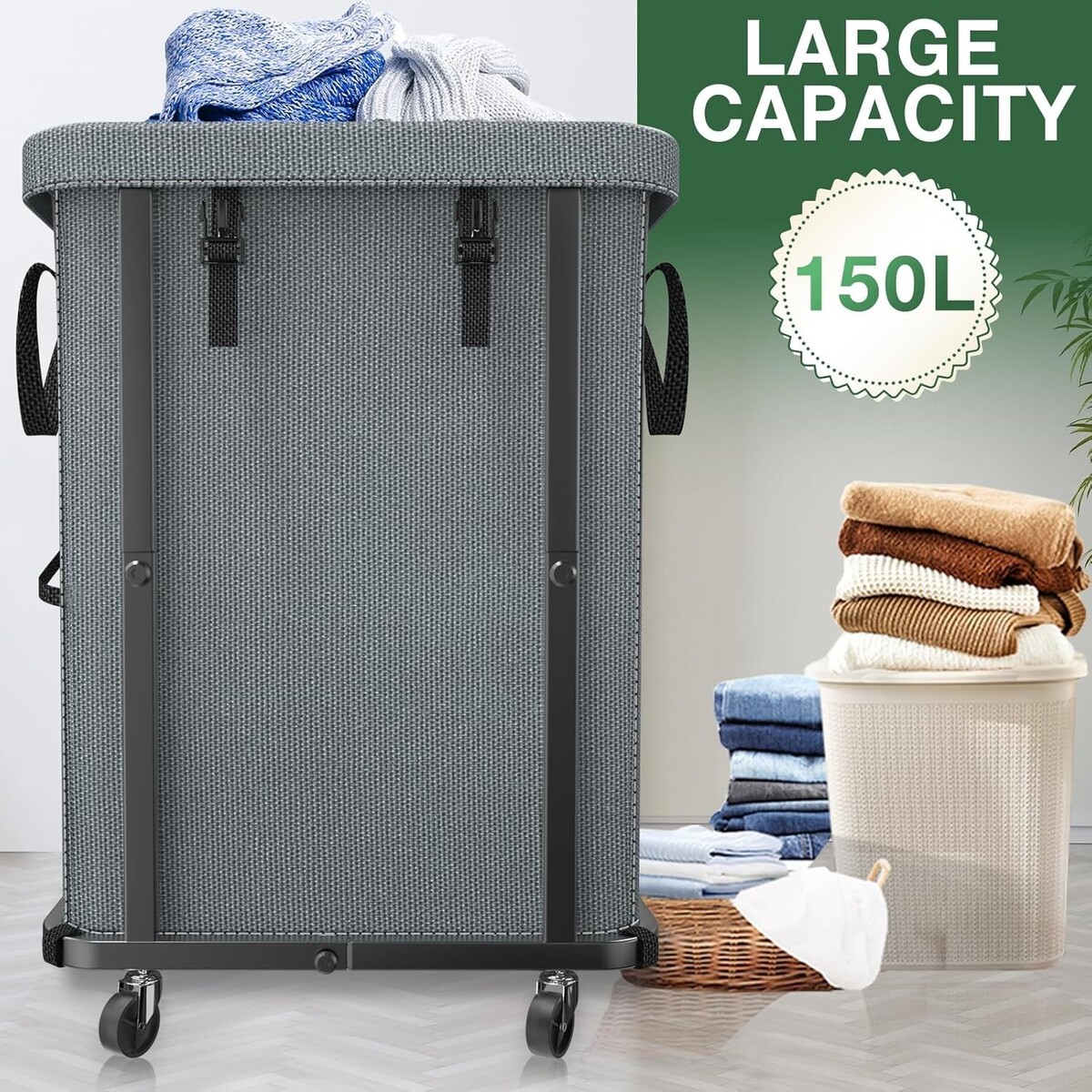 High-Grade 150L Rolling Laundry Hamper with Durable Metal Frame & Easy Mobility