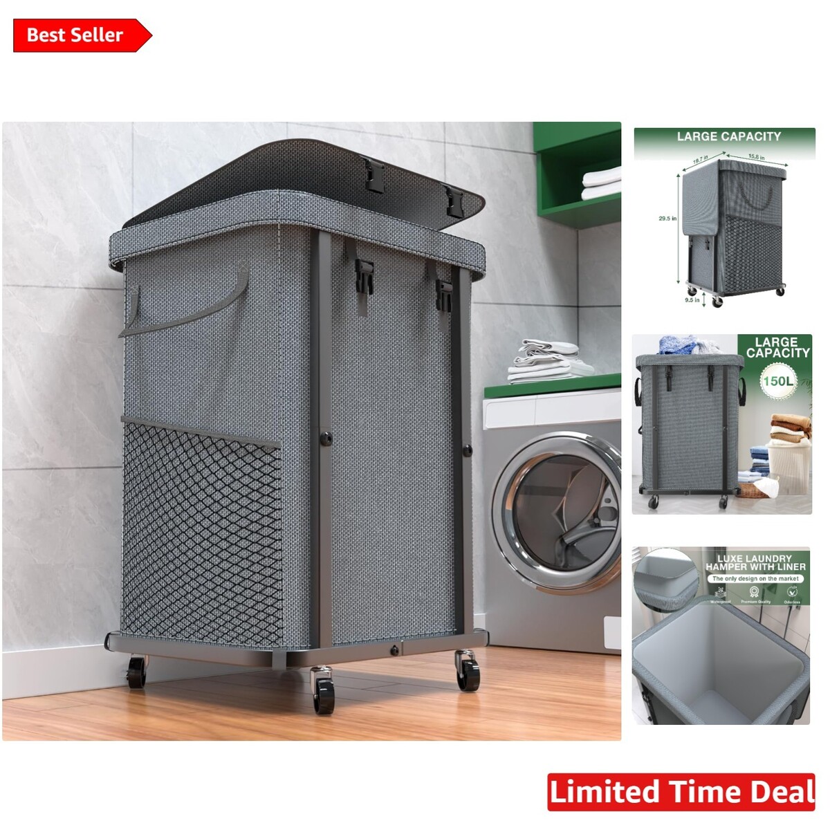 High-Grade 150L Rolling Laundry Hamper with and 47 similar items