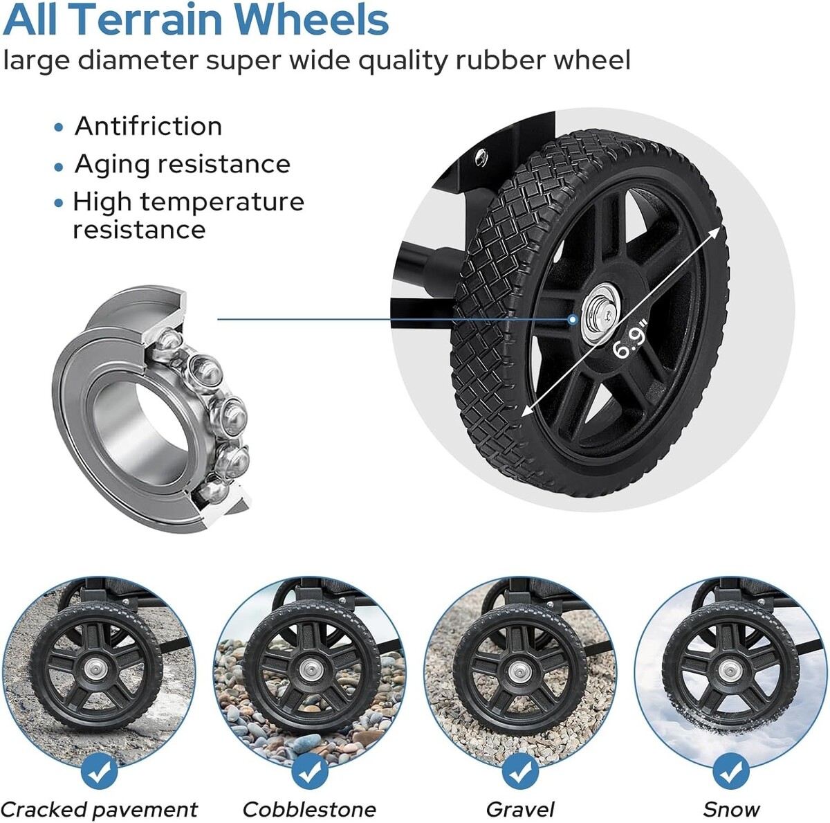 6.9 Inch All Terrain Wheels: These wheels allow for smooth movement through grocery stores, sidewalks, parking lots, and even on uneven outdoor surfaces, ensuring a comfortable shopping experience.