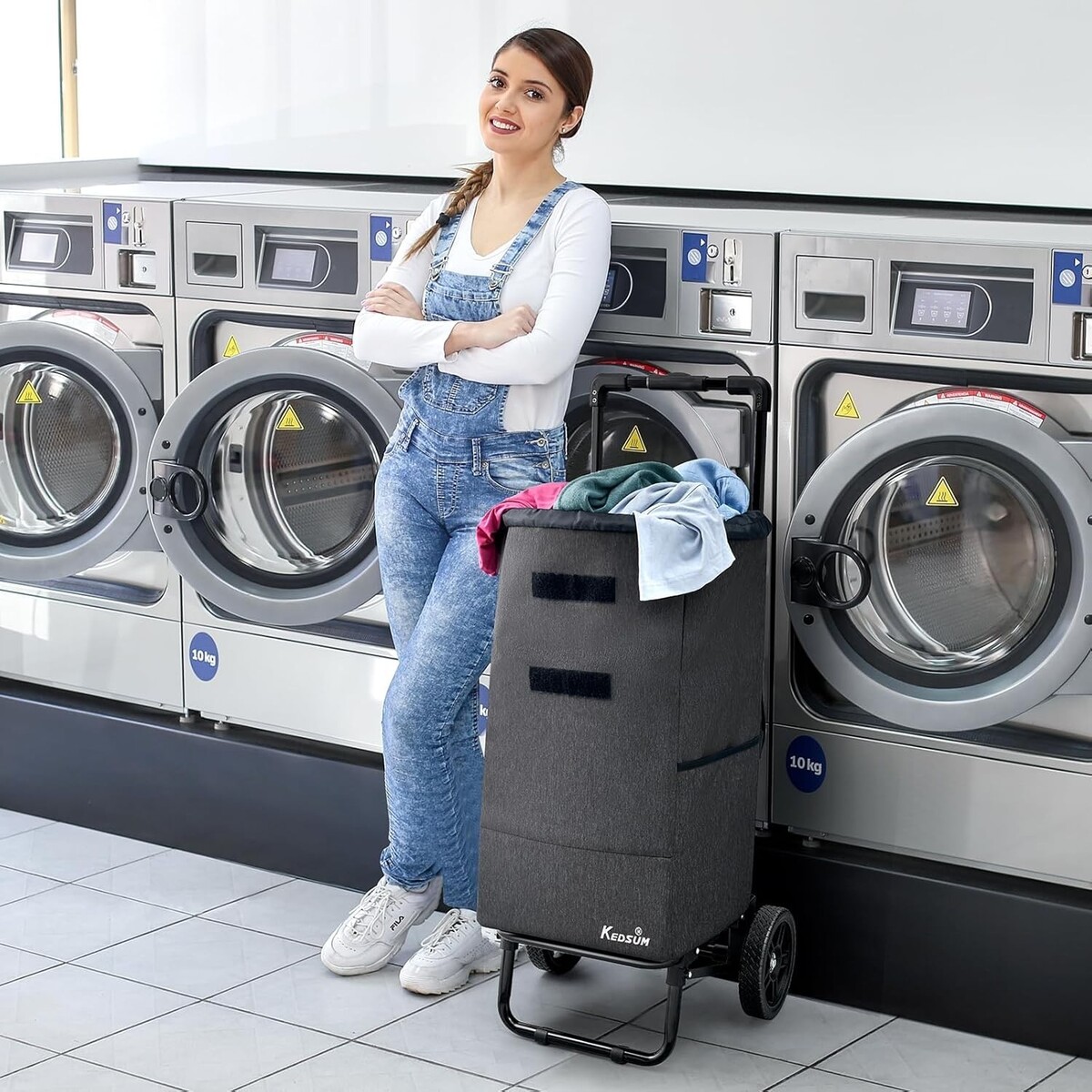 60L Large Capacity: With a large 60L bag complete with convenient side pockets, this cart meets all your weekly shopping and laundry needs effortlessly.