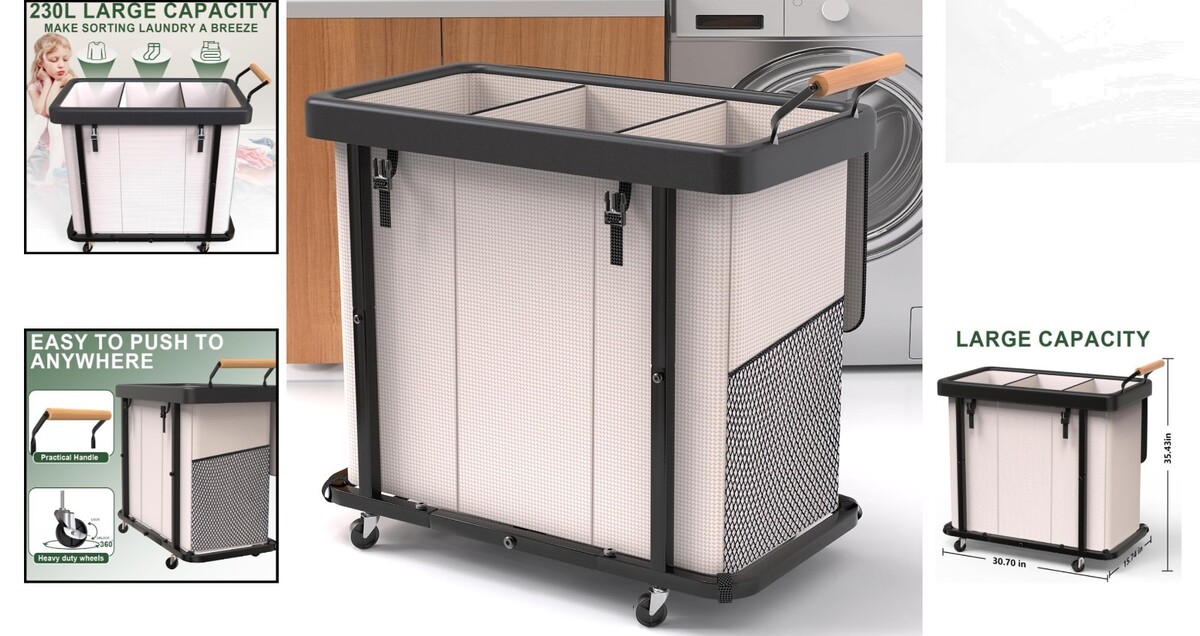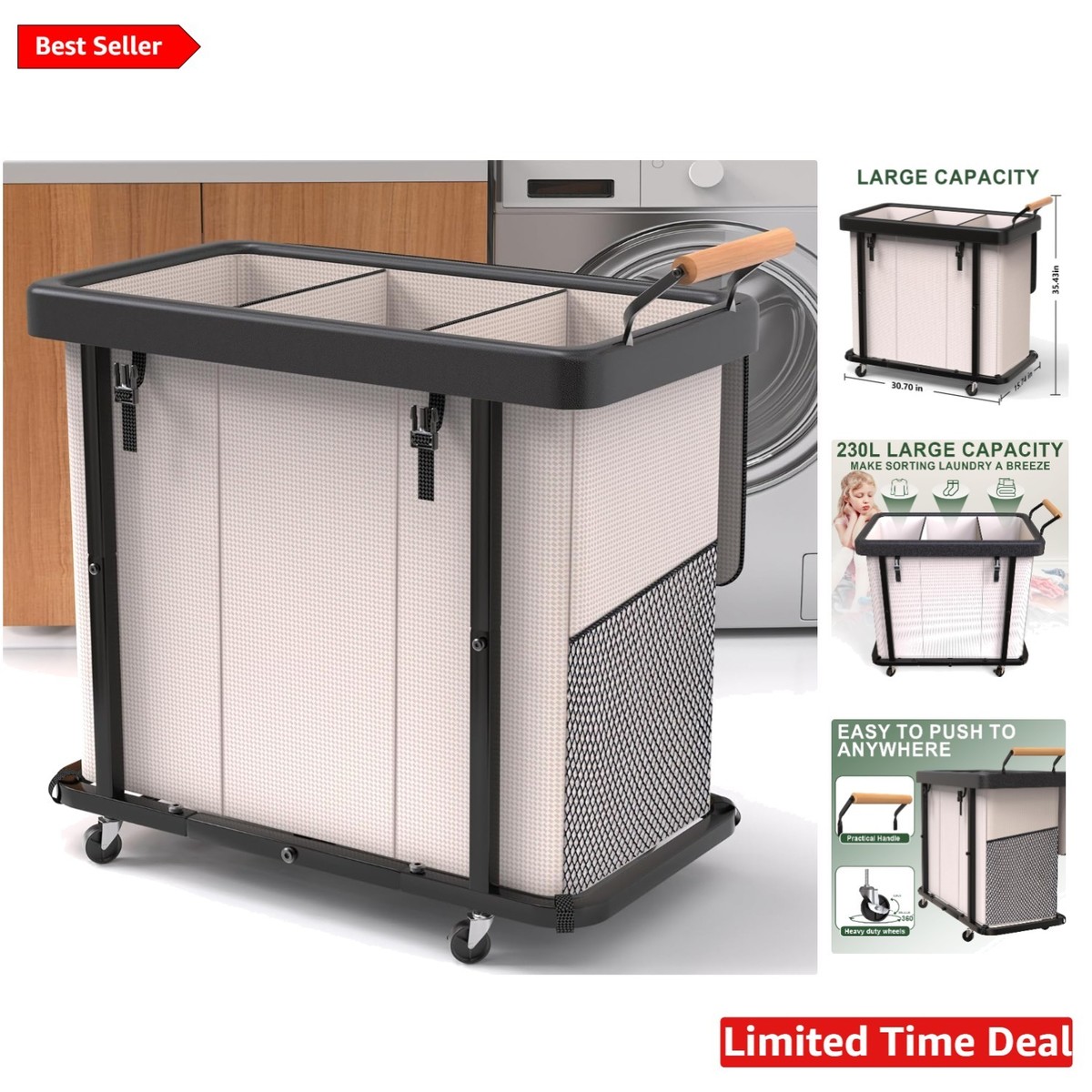 Extra Large 230L Laundry Basket - Compartmentalized with Rolling Wheels