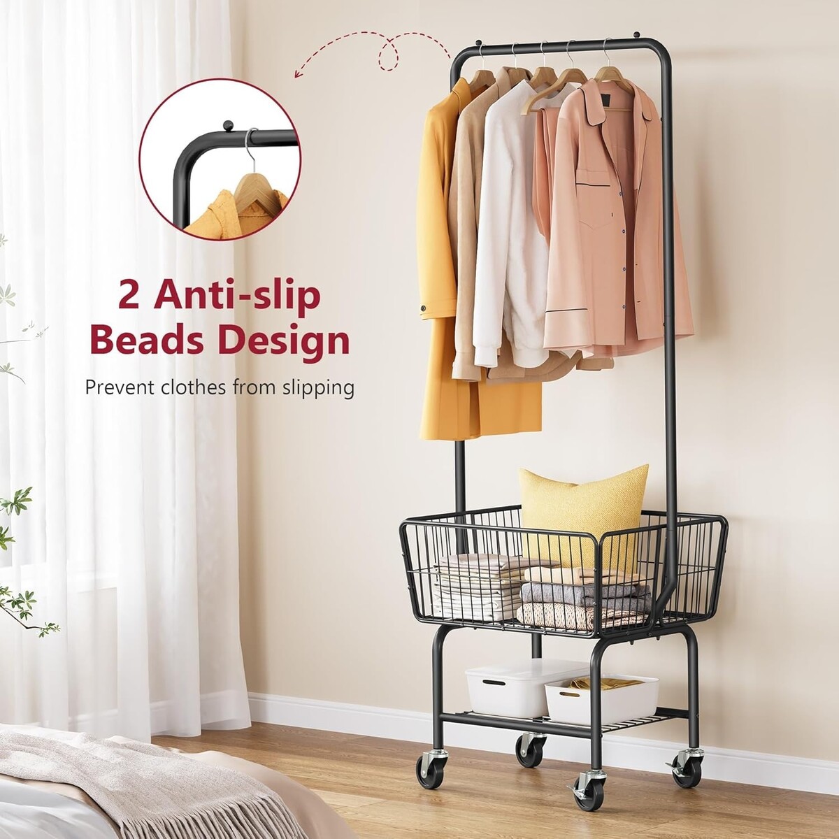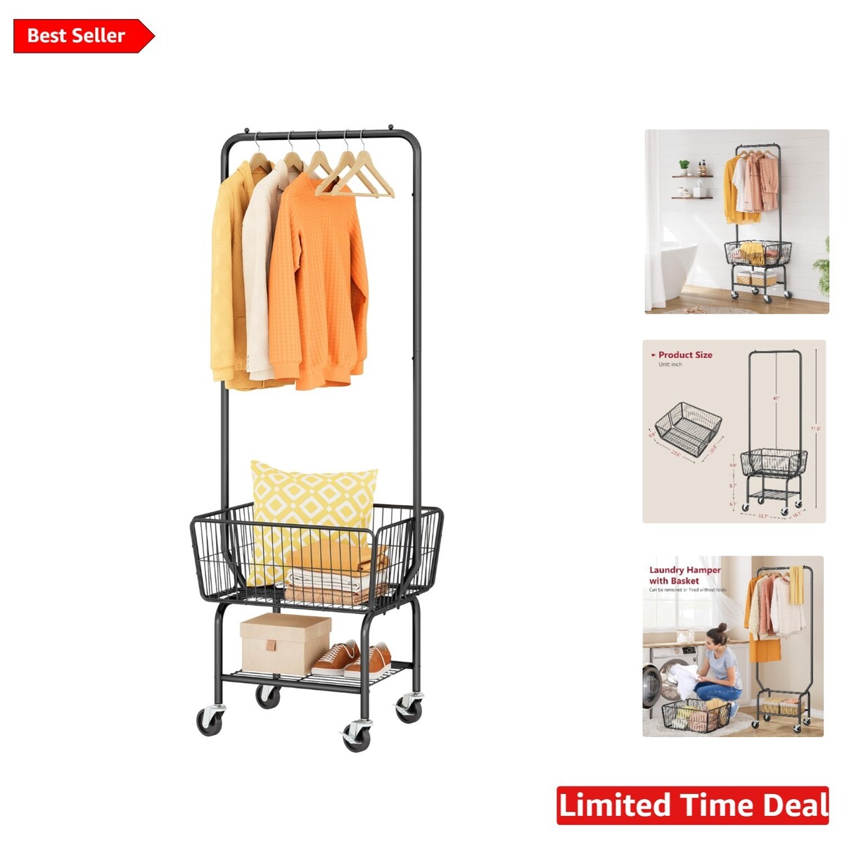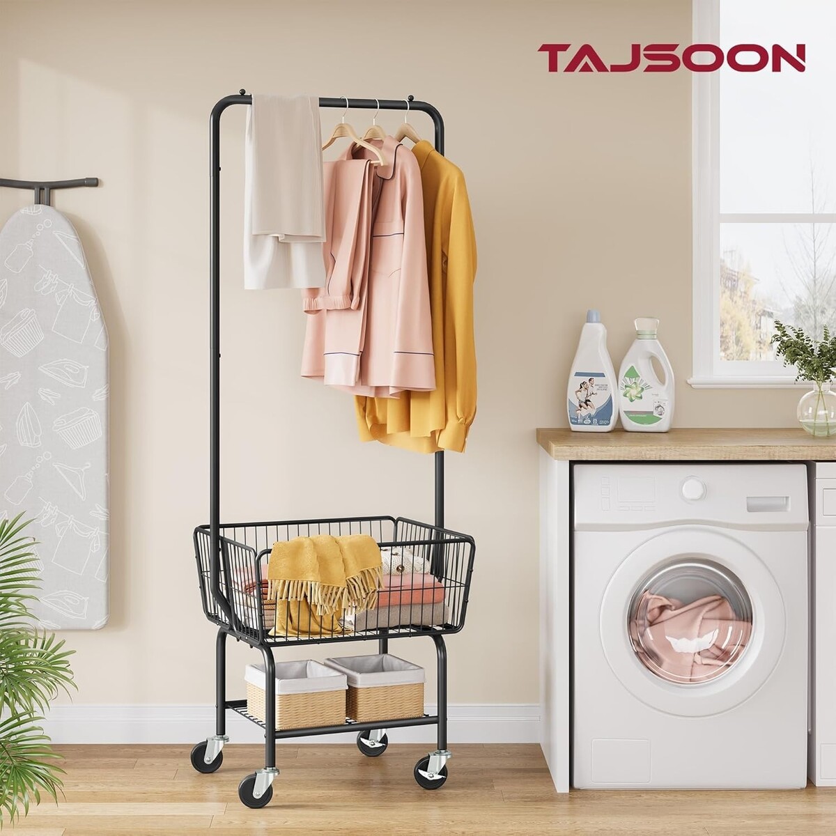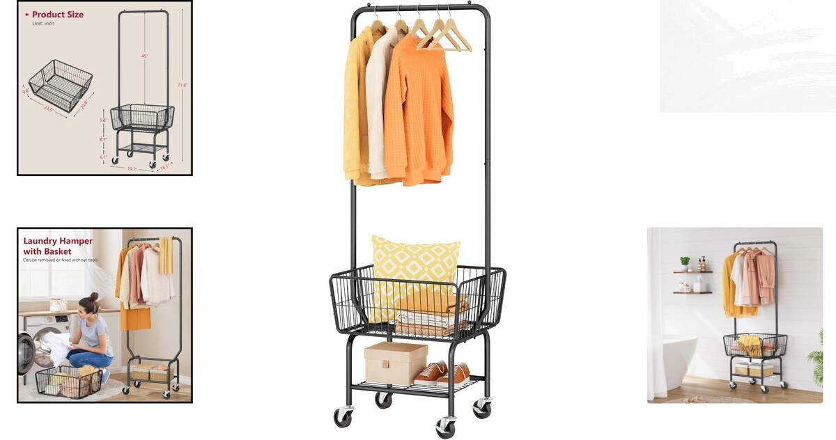 Industrial Black Laundry Cart with Hanging Rack & Wheels - Easy Organization