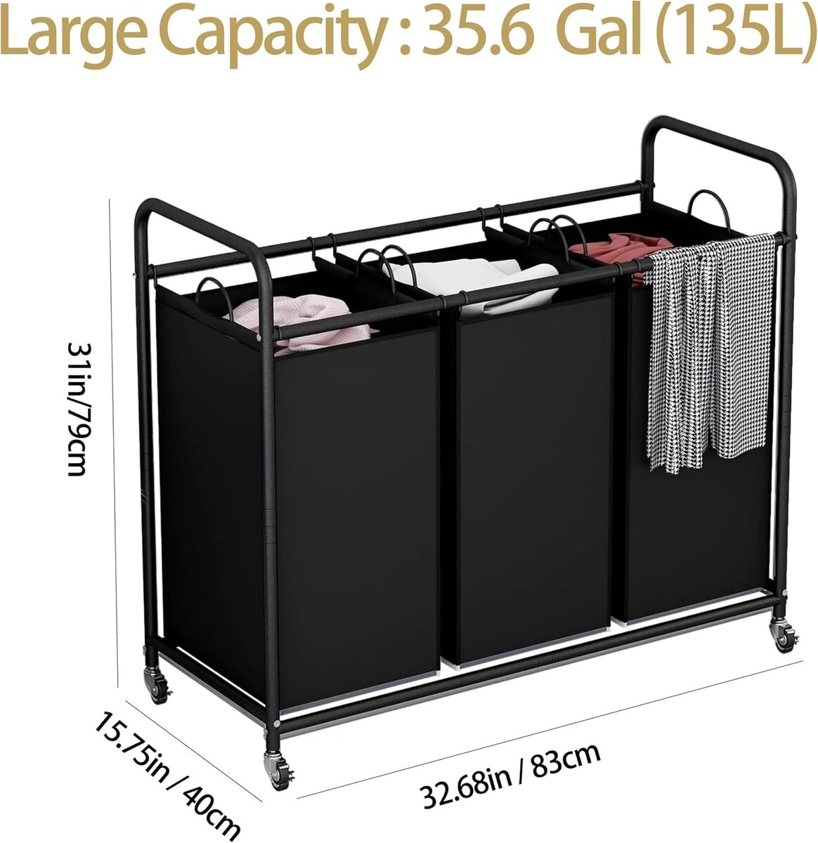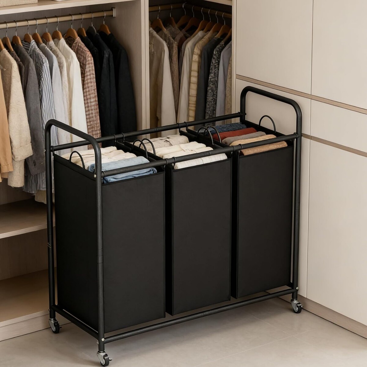 Stylish Laundry Sorter with Rolling Sturdy Wheels - Perfect for Modern Homes