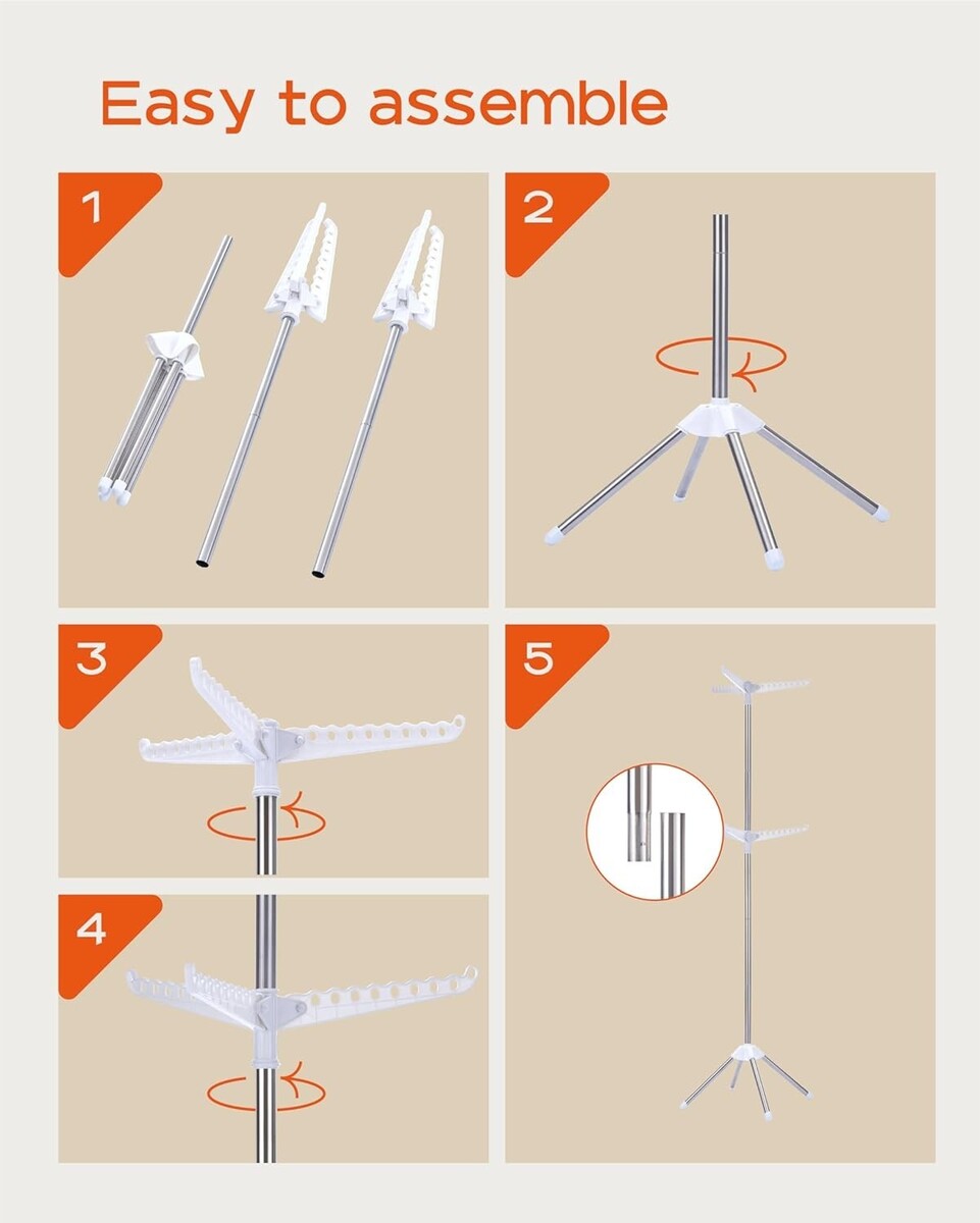 Features: Foldable,Space Saving,360 Rotating Clothes Rack,Easy to Assemble,Rust-Proof,Stable