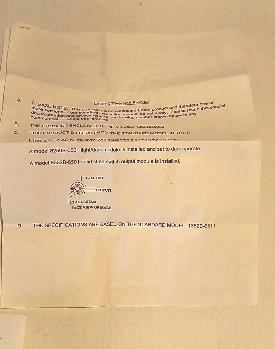 EATON 50 Series Photoelectric Sensor 90-132 VAC 1352BS5003