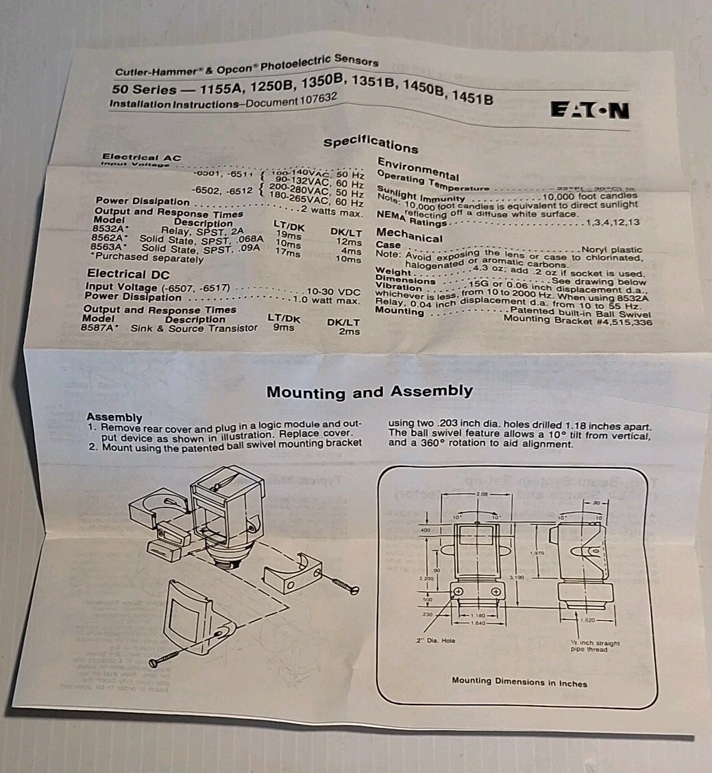 EATON 50 Series Photoelectric Sensor 90-132 and similar items