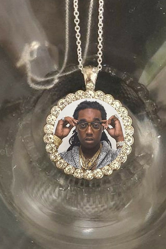 Takeoff Migos silver necklace rhinestones fast free shipping memorial RIP