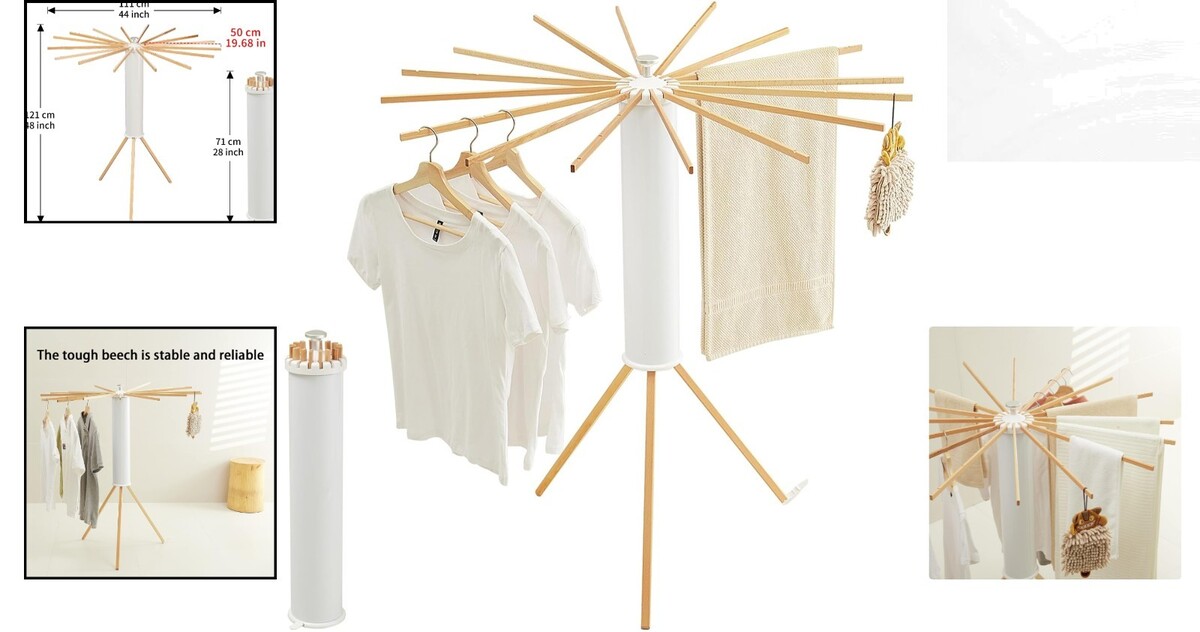 Sturdy and Durable: This exquisite drying rack can hold up to 45 lbs of garments. Expandable arms adapt to your space and needs, while the unique tripod structure ensures stability even in tight areas.