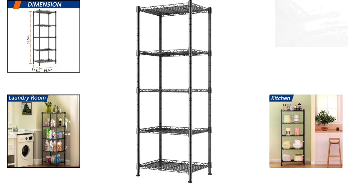 Modern 5-Tier Black Shelving Rack with Adjustable Heights for Versatile Storage
