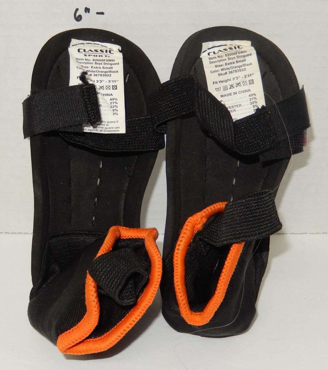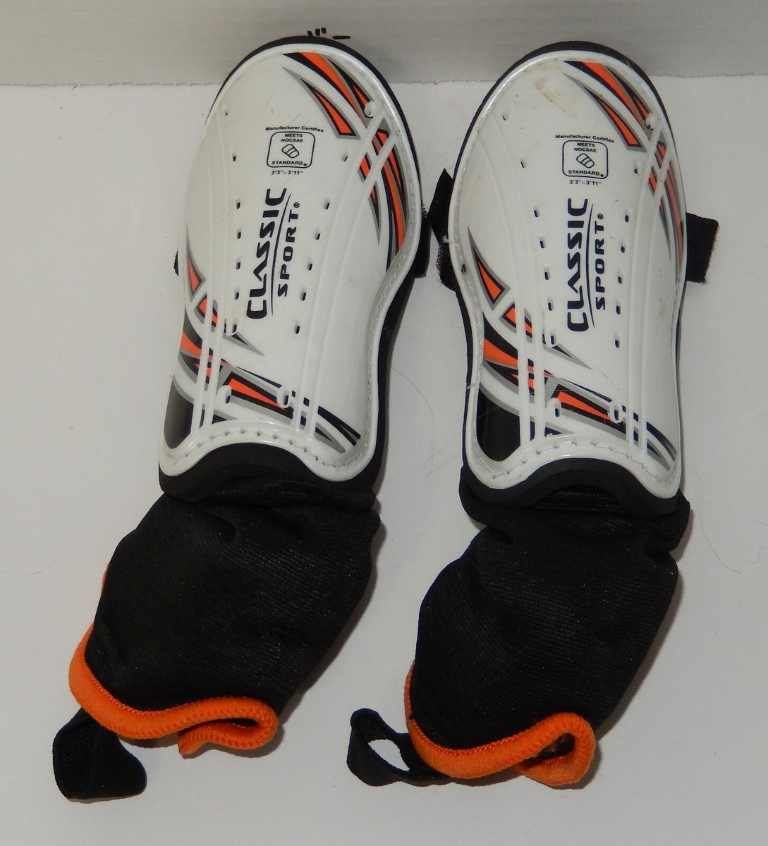 For Sale is a Pair of Classic Sport Boys Soccer Shin Guards Size extra Small 3'3"-3'11" Black White orange. its in good used Condition as pictured. the Max Height of the youth should be 4'7"-4'11". Please ask Any and All Questions prior to purchasing. Fast Same or Next day shipping with Free Delivery Confirmation within the U.S. Payment Due within 7 days of purchase (if you need more time please let us know In advance) we love to combine shipping is always a Yes and Most of the time Additional Items Ship for free.