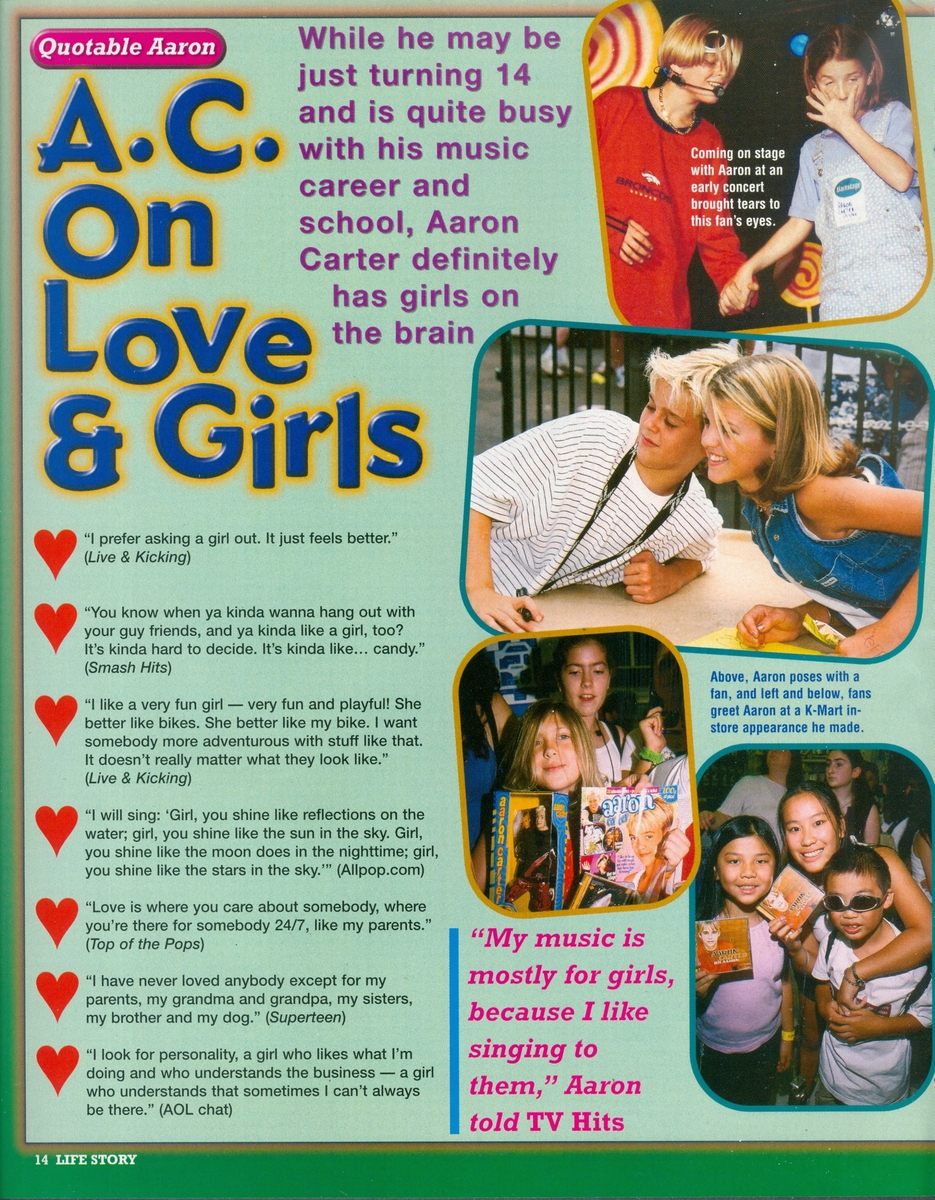 Aaron Carter - Leslie - BJ Jane - 11" x 8" Teen Mag Pinup Mini-Poster Clipping 6