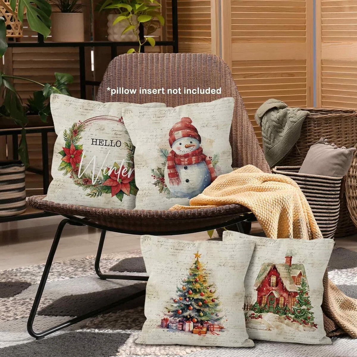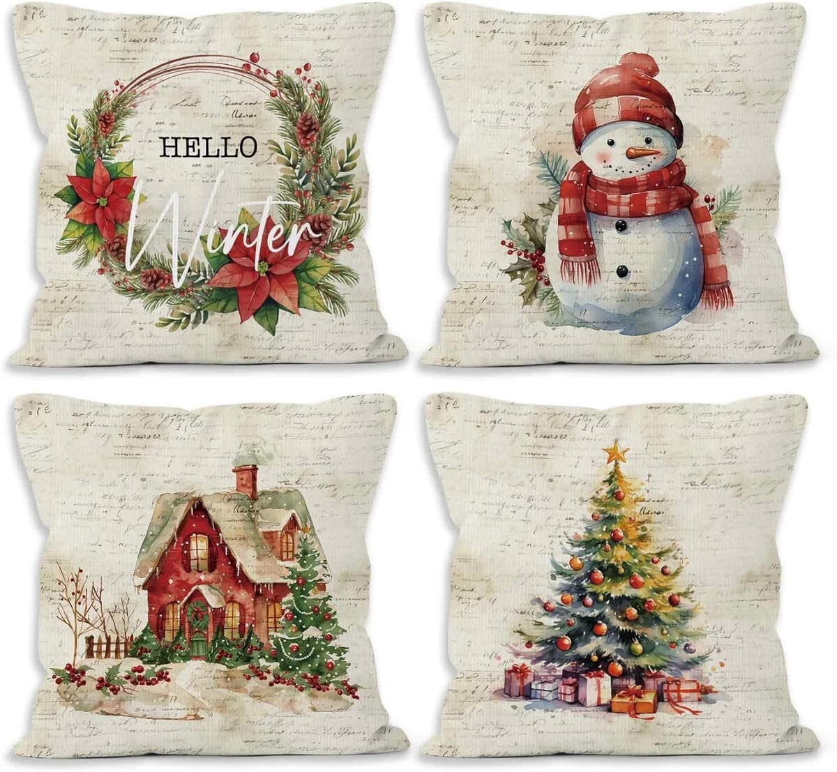Set of 4 Vintage Winter Christmas Throw Pillow Covers 18x18 Bedroom Pillowcases